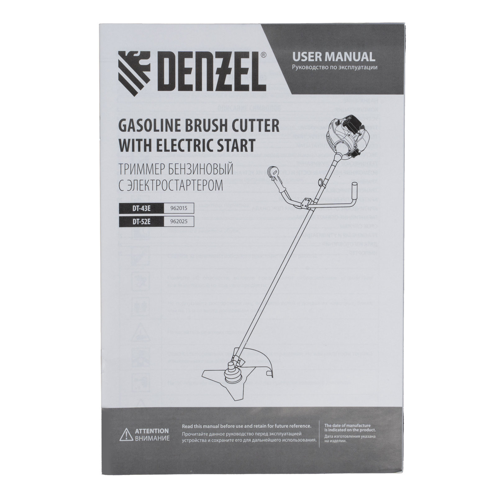 Триммер бензиновый DT-52E, 52 см3, неразъемная штанга, электростартер, состоит из 2 частей Denzel в Воронеже