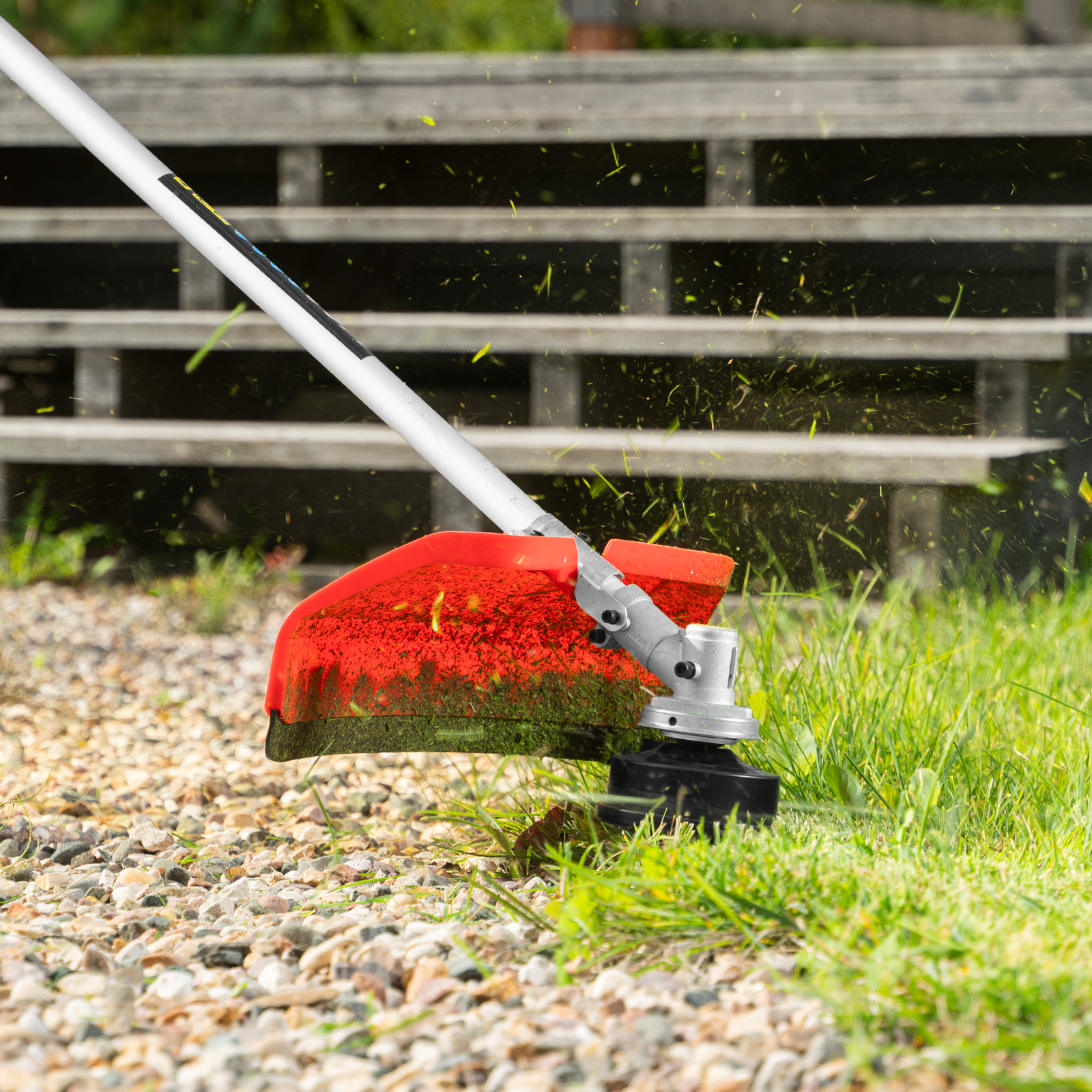 - Комфортная работа — благодаря плечевому ремню и рукояткам велосипедного типа триммер удобно удерживать и направлять.