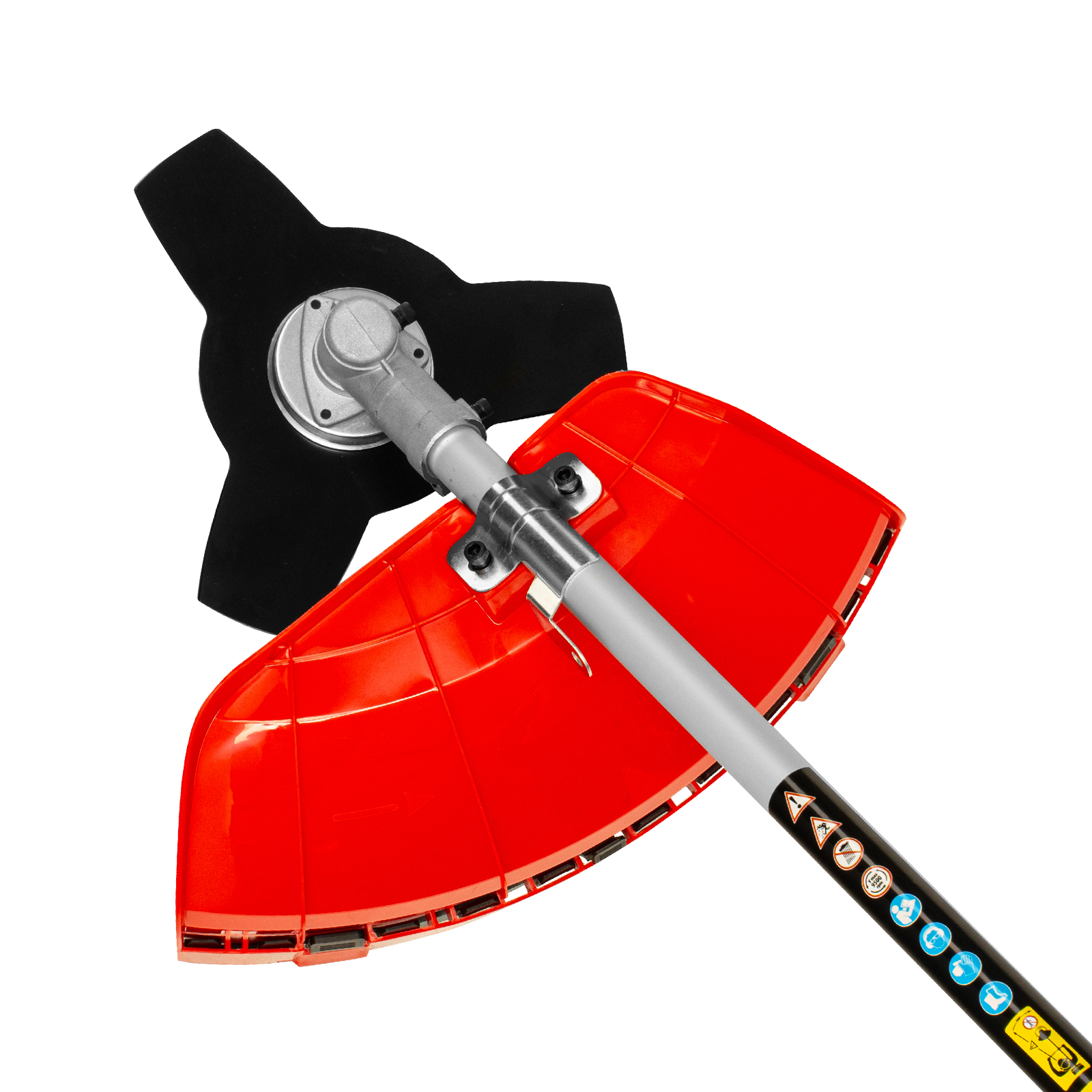 - Безопасность — производитель предусмотрел блокировку курка газа для предотвращения случайного запуска, защитный кожух препятствует вылету травы, веток, камней в сторону пользователя.
