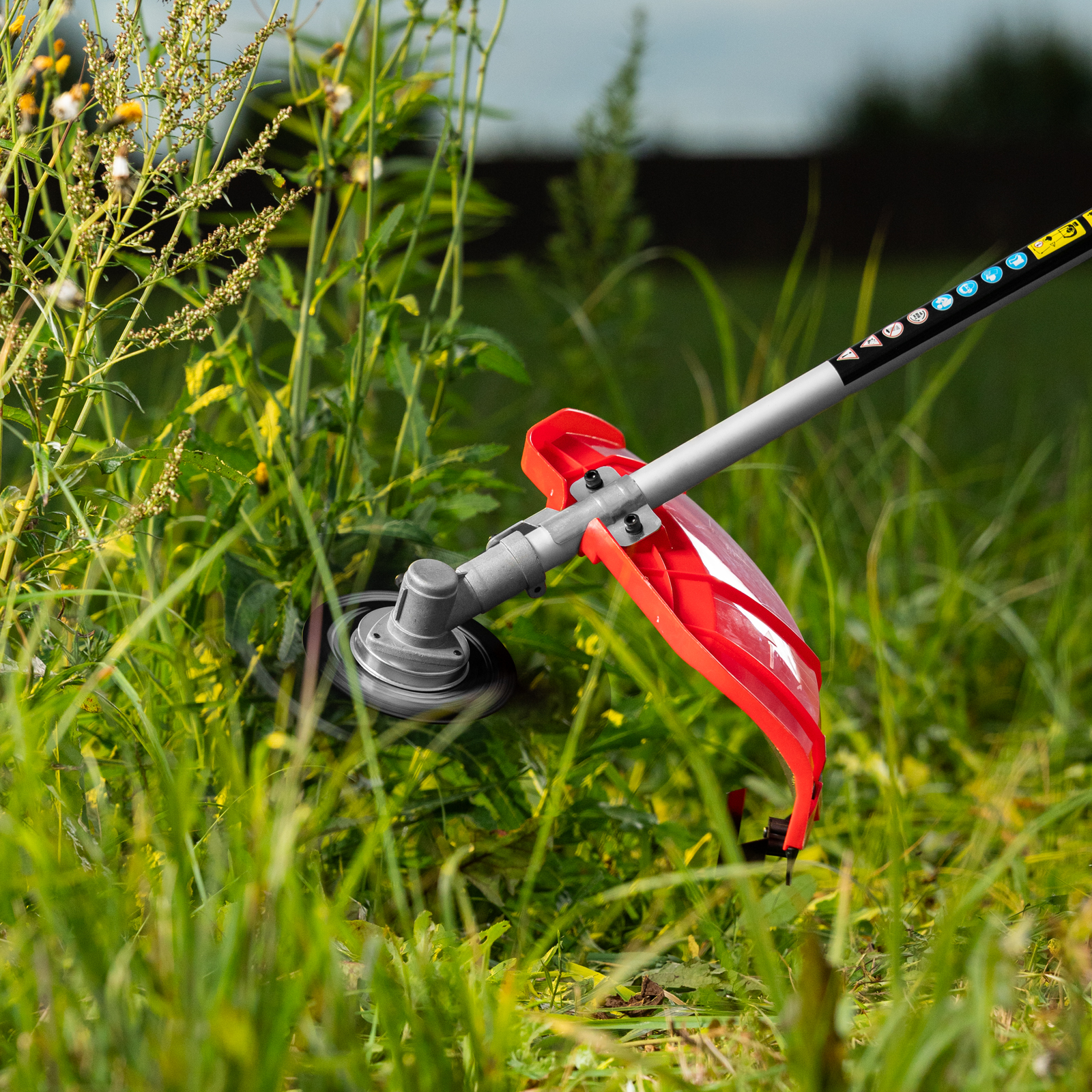 - Удобное хранение и транспортировка — благодаря разъемной штанге триммер не занимает много места.