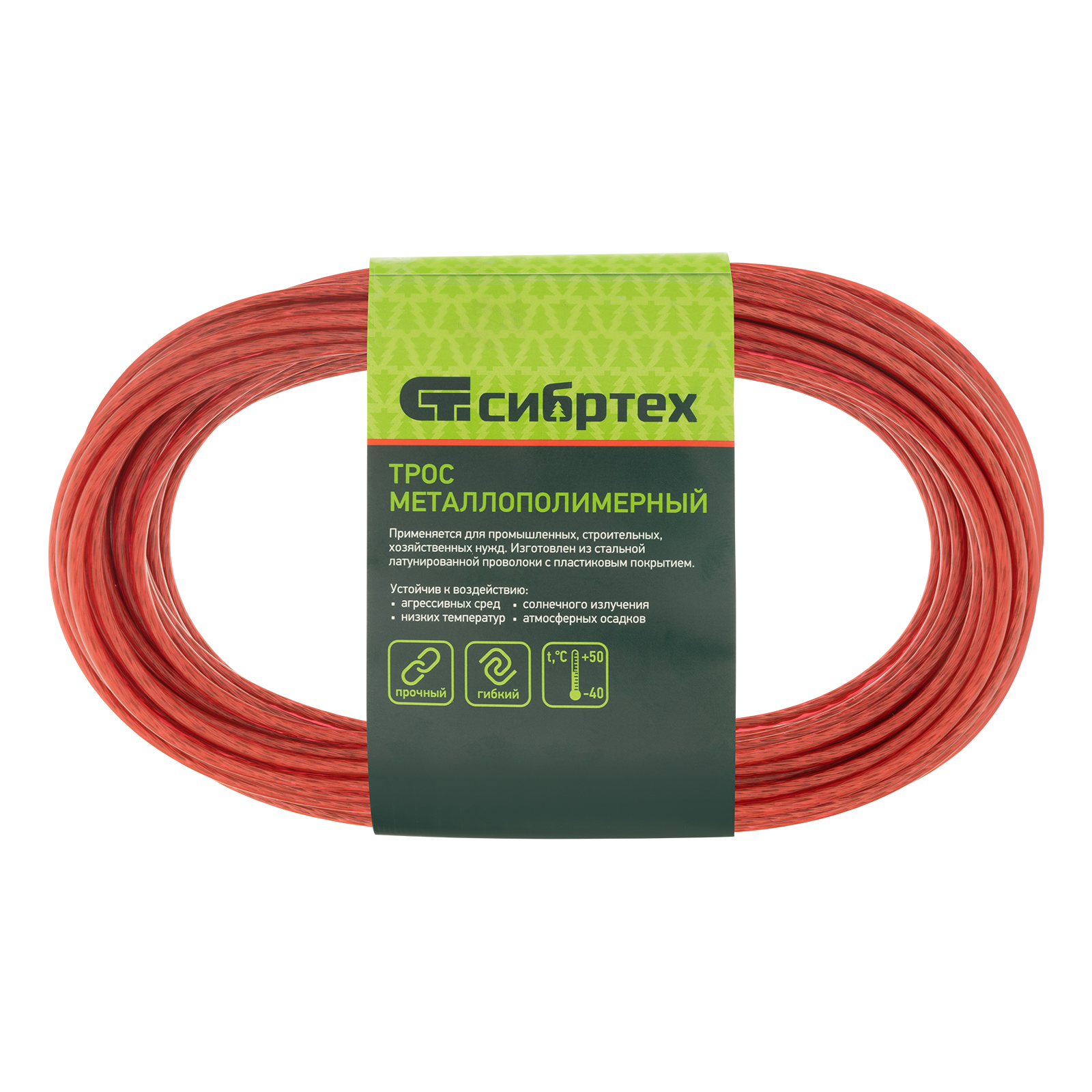 Трос металлополимерный красный ПР-3.0, толщина 3.0 мм, моток 20 метров Сибртех в Воронеже