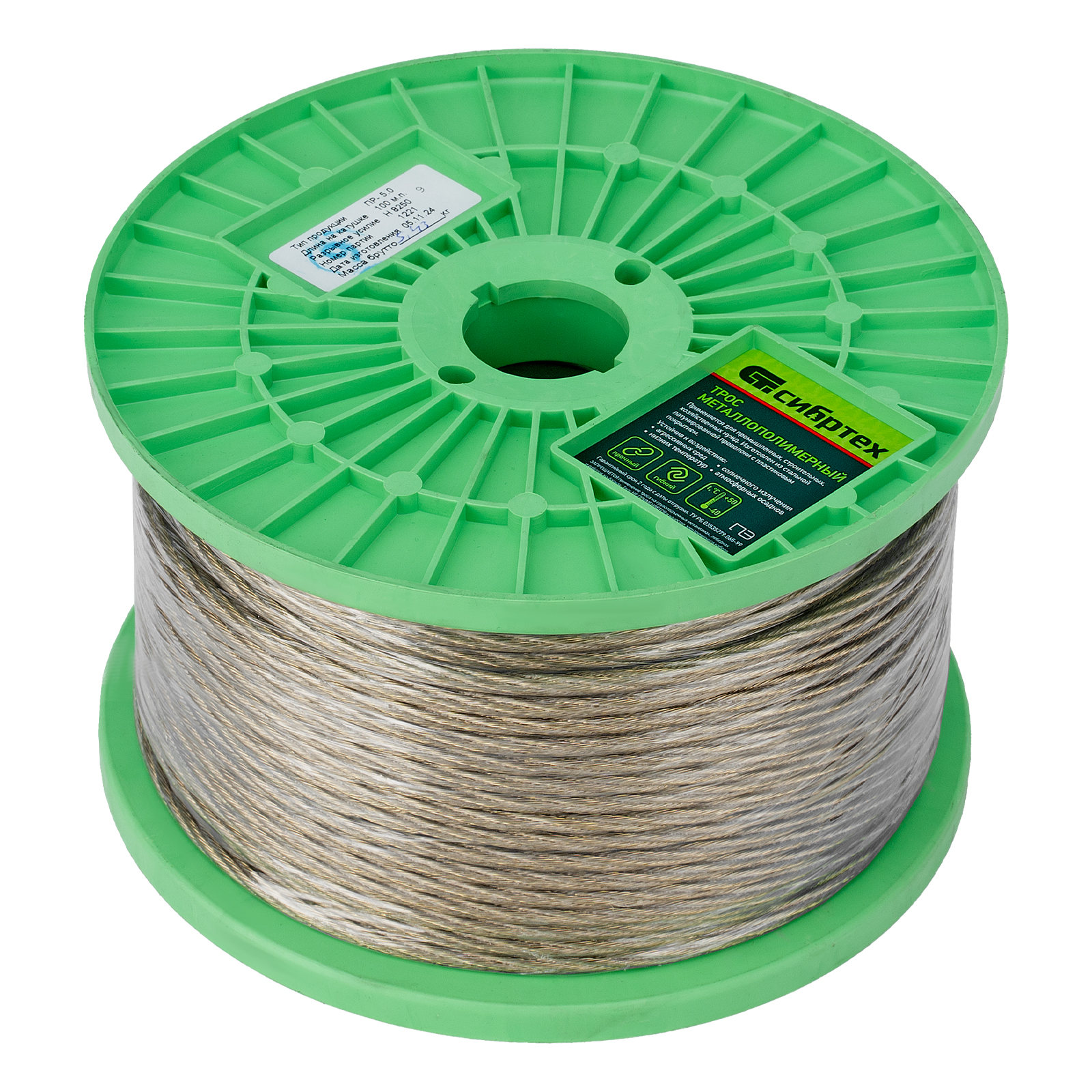 Металлополимерный прозрачный трос ПР-5.0 Сибртех 47632 толщиной 5 мм, 100 м. п. на катушке, используется для монтажа рекламных баннеров, установки ограждений, палаток, теплиц, погружения скважинных насосов и датчиков. Применяется в качестве садового троса-шнура для подвязки растений, а также может служить для развешивания белья. Жила шнура изготовлена из стальной проволоки, поэтому он выдерживает значительные нагрузки.