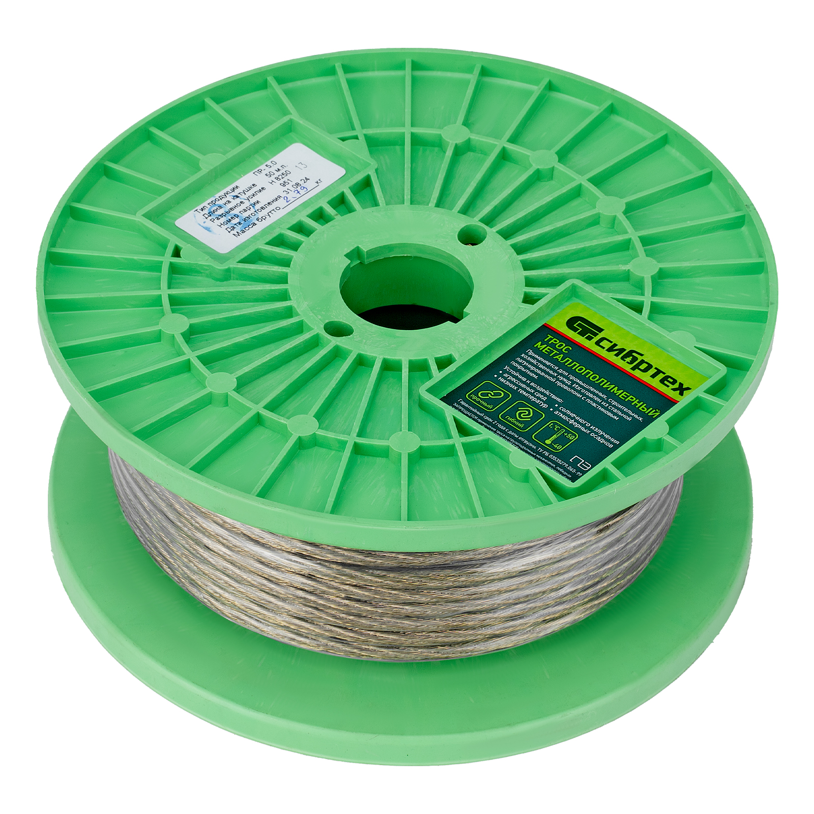 Трос металлополимерный прозрачный ПР-5.0, толщина 5.0 мм, катушка 50 метров Сибртех в Воронеже
