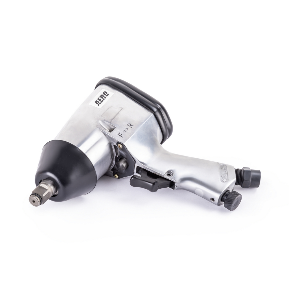 Пневматический ударный гайковёрт AERO с крутящим моментом в 310 Нм предназначен для работы с резьбовыми соединениями. Ударно-вращательное действие гайковерта используются для закручивания или откручивания крепежных деталей. Для этого изделие оснащено переключателем для реверса. Применение гайковёрта в быту или в профессиональной сфере позволяет не только сэкономить время и силы, но и значительно повышает долговечность элементов резьбовых соединений, а значит, и общее качество сборки механизма. Корпус гайковёрта изготовлен из легкого алюминиевого сплава, а приводной квадрат с фрикционным кольцом размером 1/2" изготовлен из очень прочной стали, легированной хромом, молибденом и никелем. Отток воздуха осуществляется вниз через рукоятку пистолета. Имеет короткую ось. Может применяться в автосервисе для легкой работы или на сборочных производствах, также прекрасно подойдет в качестве профессионального инструмента для гаража.