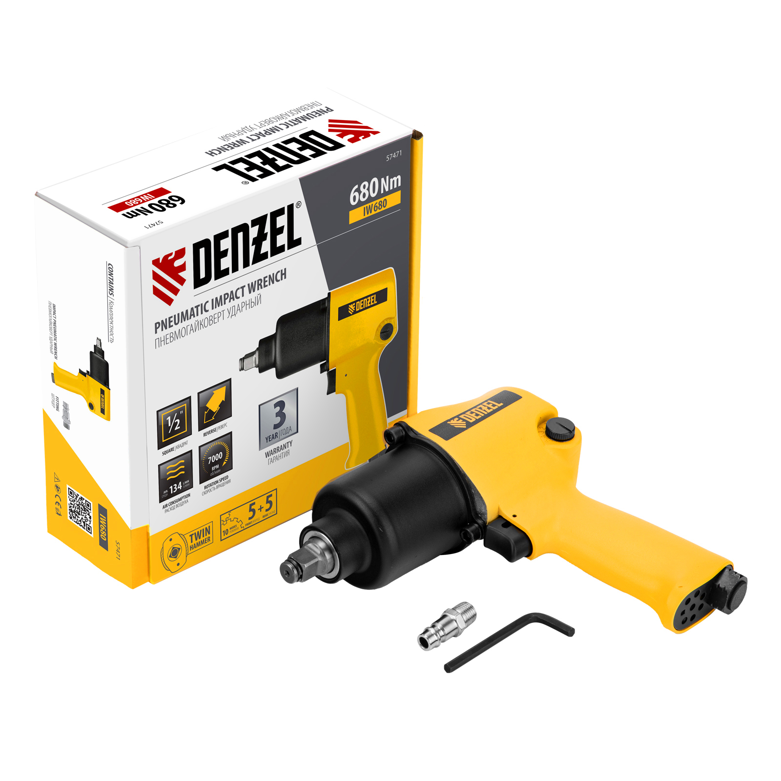 Ударный пневмогайковерт IW680, 1/2", 7000 об/мин, 680 Нм Denzel в Воронеже