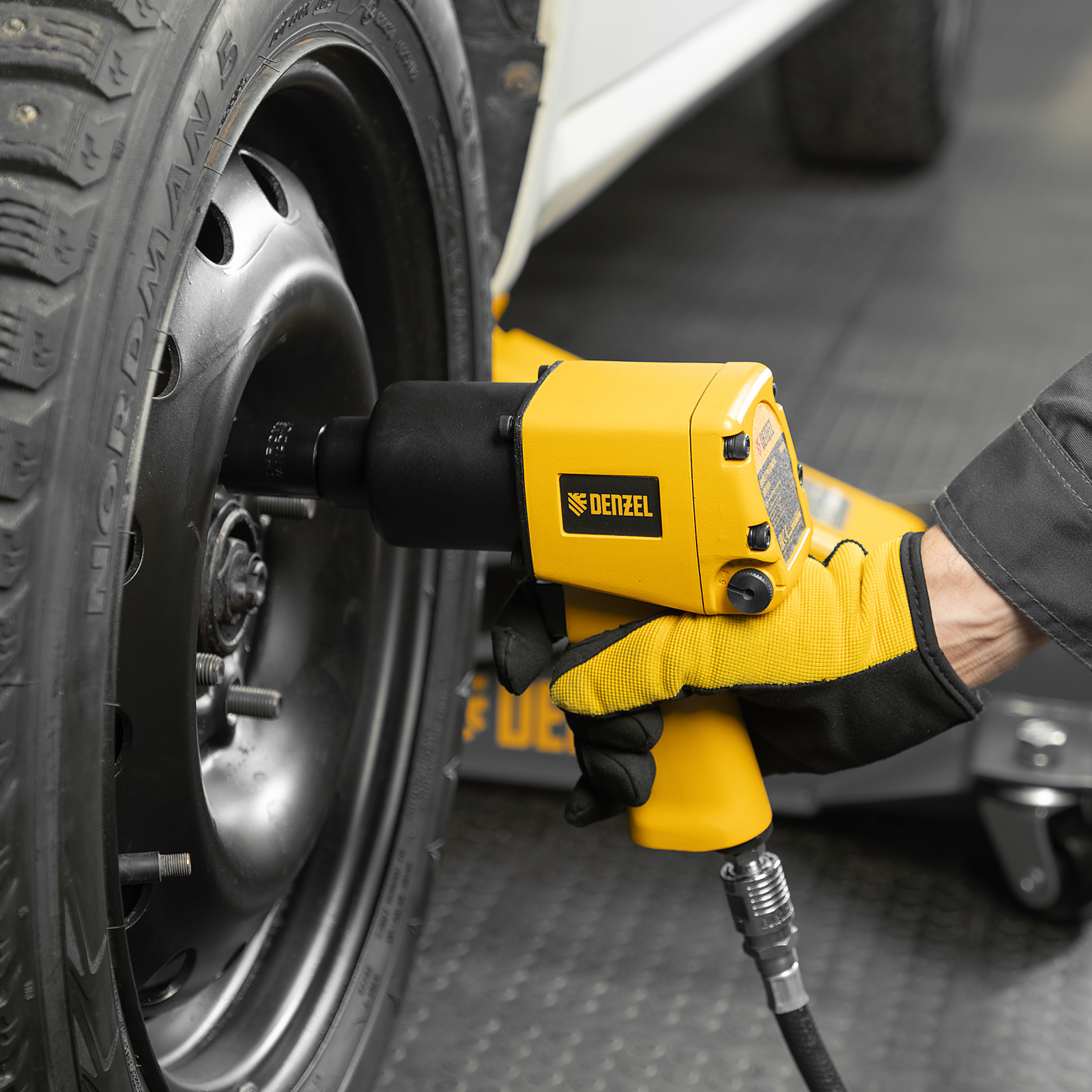 - Простая подготовка к работе — гайковерт подключается к компрессору при помощи быстроразъемного соединения.