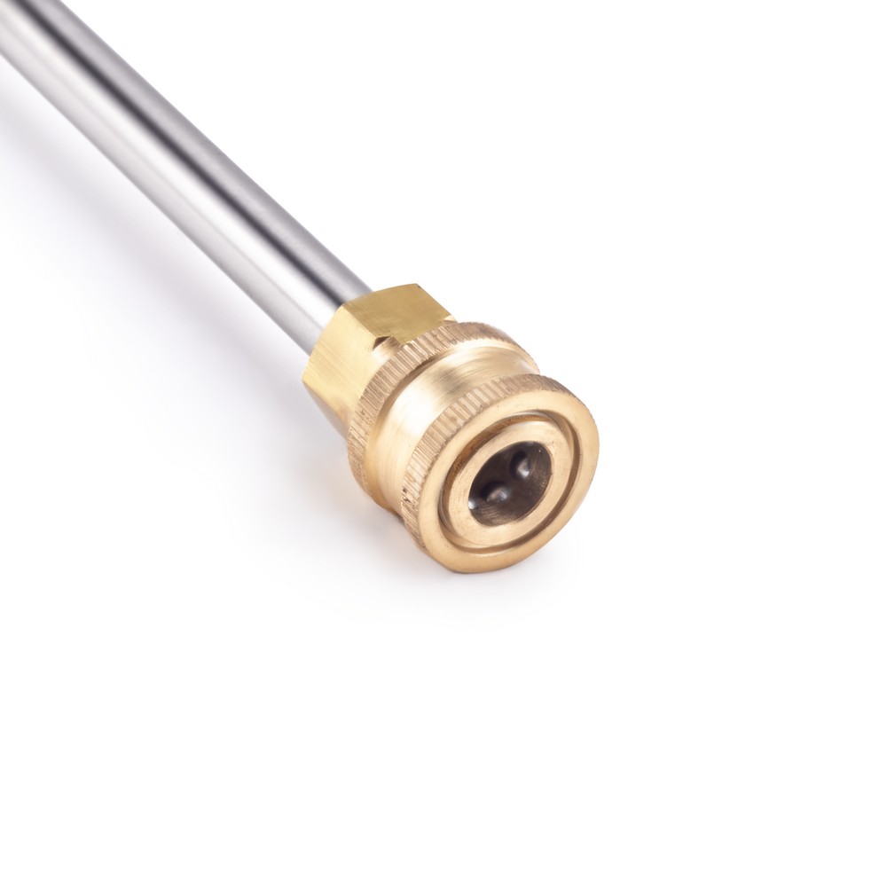 Удлинительный адаптер для пистолетов AG1275 моек высокого давления KVAZARRUS K5 EXPERT, K7. Используется для присоединения к пистолету аппаратов с помощью резьбового соединения M22 x 1,5 и дальнейшей установки струйных насадок, сопел и пеногенераторов c помощью быстрозажимного соединения. Обеспечивает безопасность и удобство работы при использовании струйных насадок высокого давления и сопел, а также предусматривает установку пеногенератора. Удлинительный адаптер изготовлен из нержавеющей стали, а резьбовое соединение и быстрозажимной разъем из латуни, что обеспечивает максимальную прочность конструкции и ее долговечность. Благодаря дополнительной длине имеется возможность очищать более труднодоступные места.