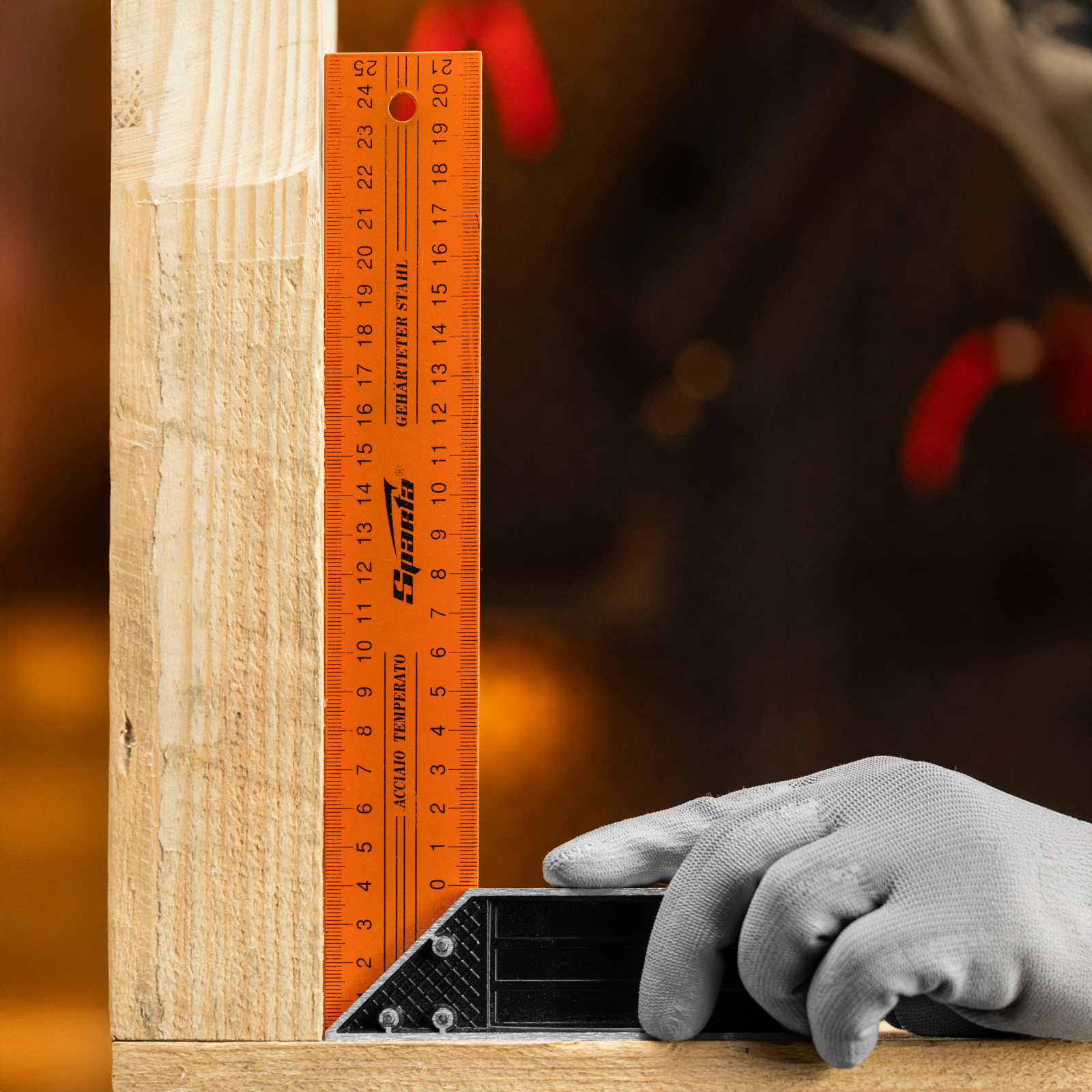 Металлический угольник Sparta 323425 длиной 250 мм пригодится для выполнения столярных и строительных работ. С его помощью можно задать и проверить угол 90° при сборке или обработке различных изделий.