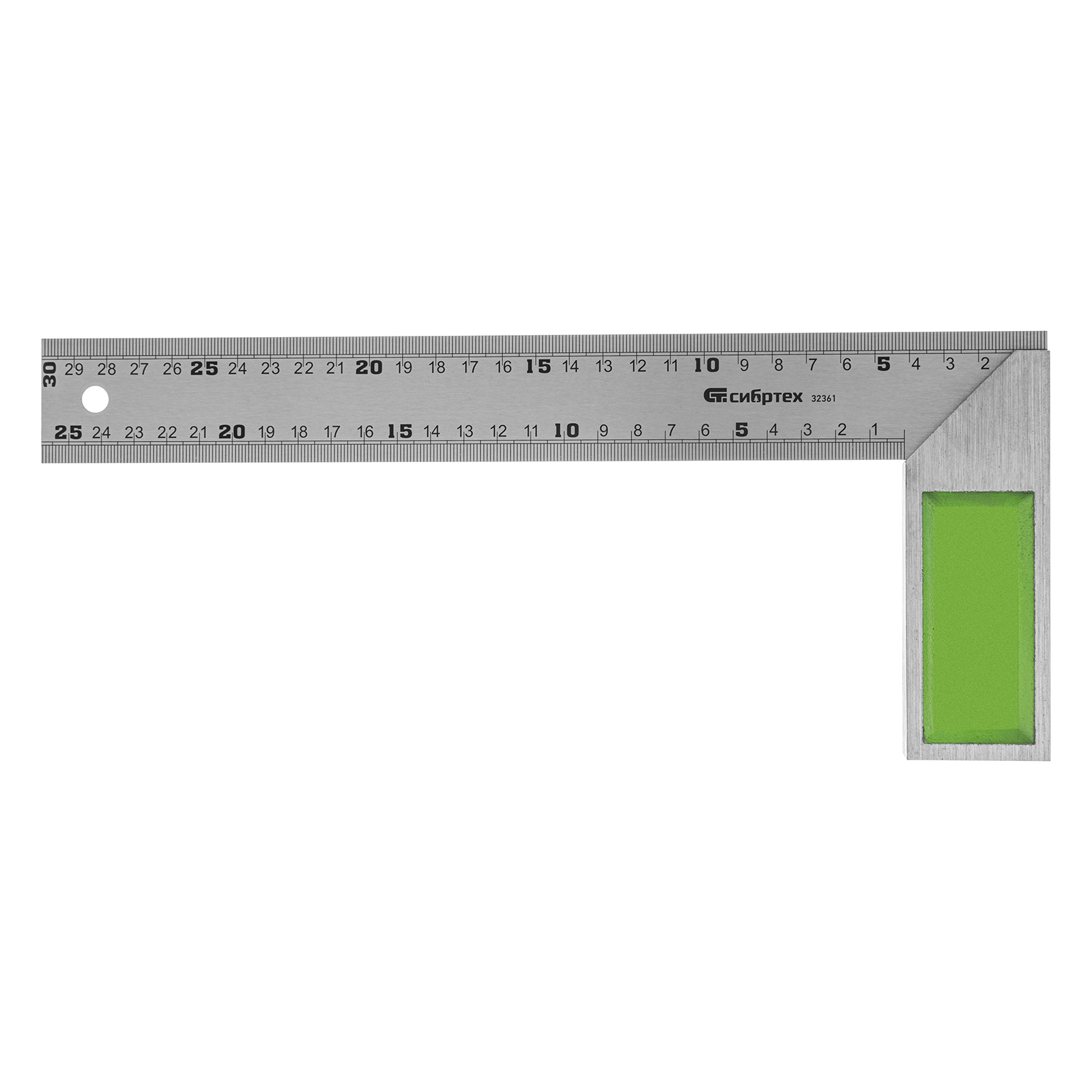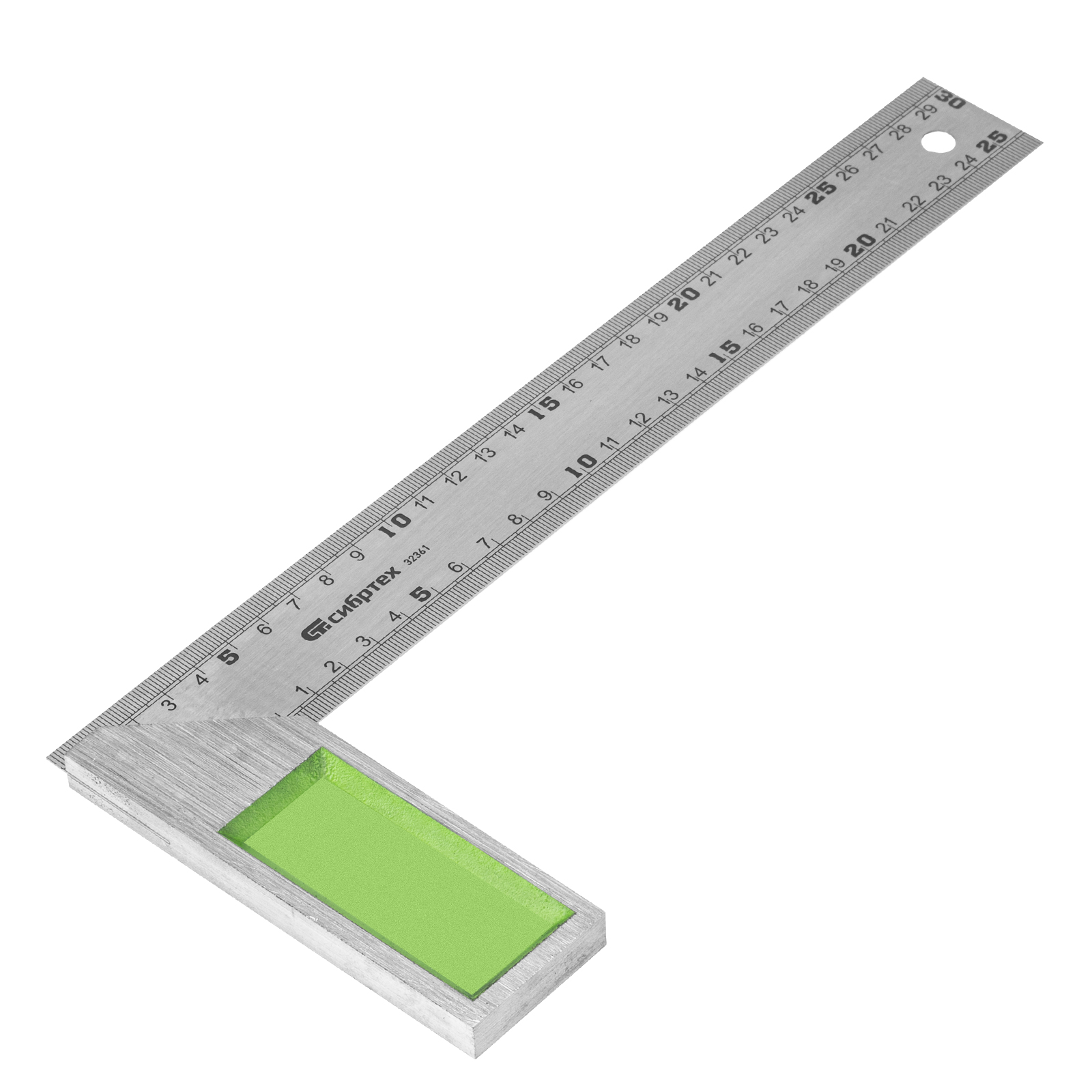 Металлический угольник Сибртех 32361 длиной 300 мм предназначен для проверки углов 45° и 90° во время сборки и обработки изделий. Используется также для разметки поверхностей во время строительных и столярных работ.
