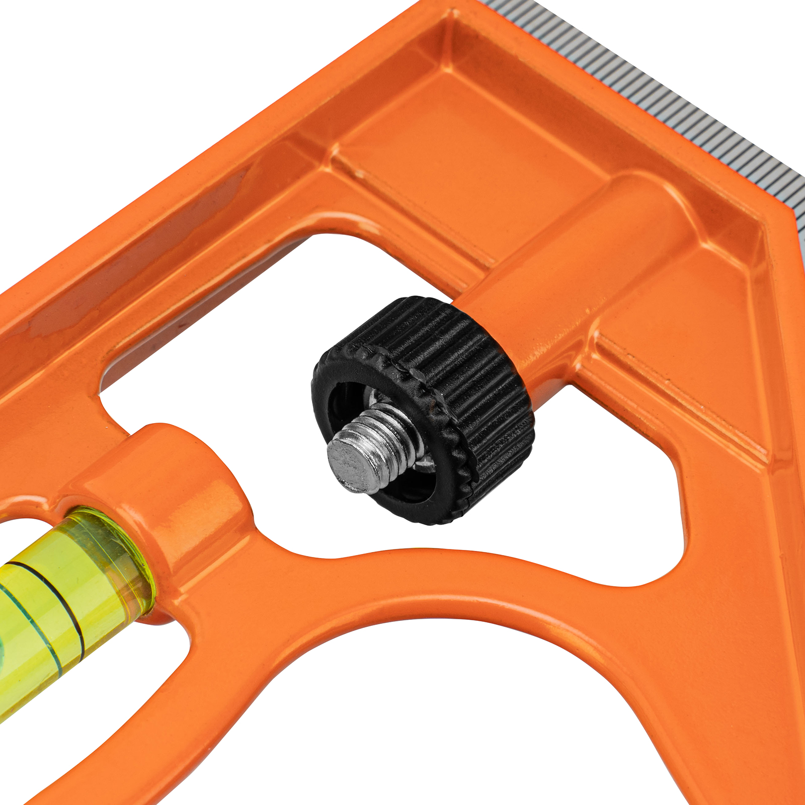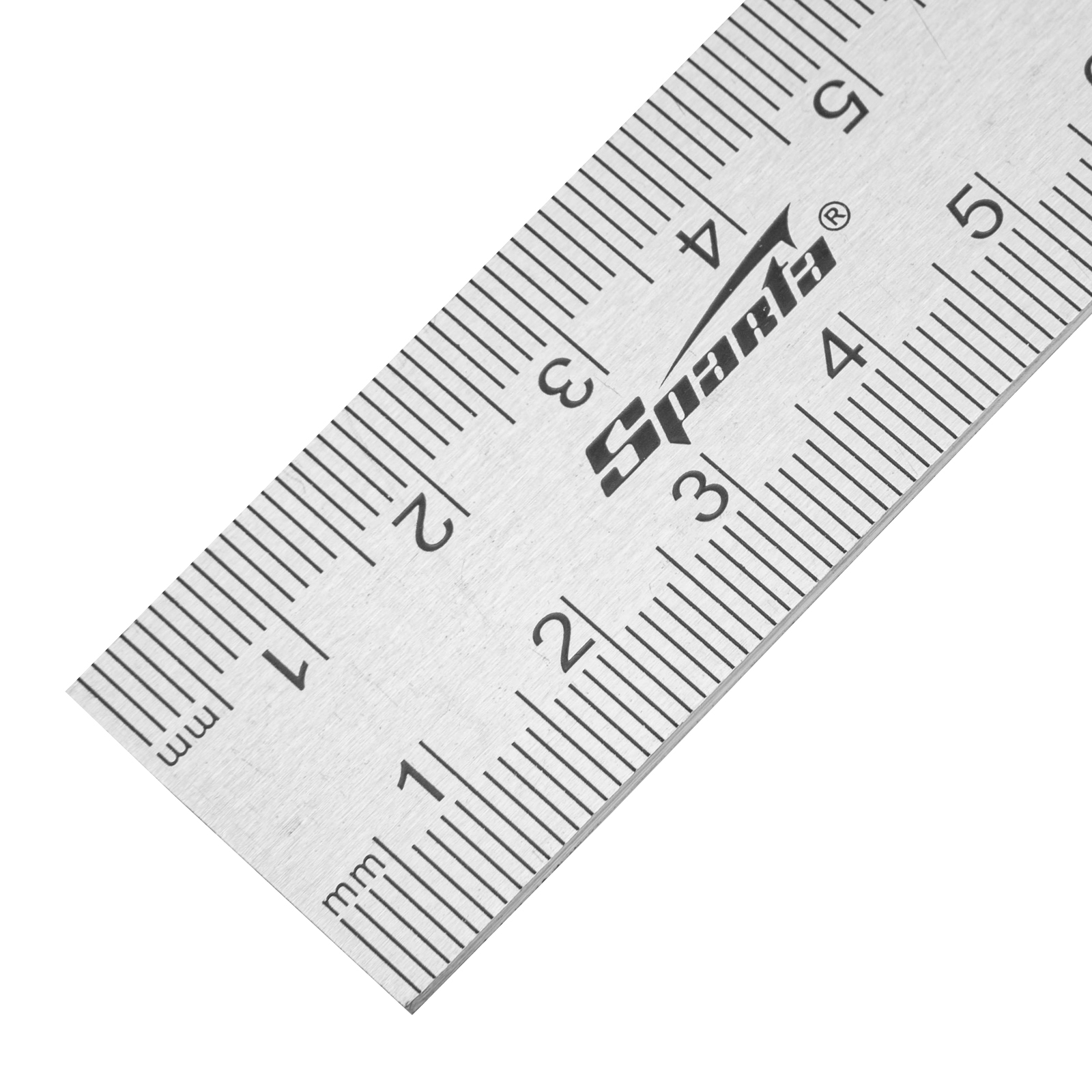 Комбинированный металлический угольник Sparta 323675 длиной 300 мм используется для разметки поверхностей и проверки точности углов 45° и 90°. Пригодится для выполнения столярных работ, а также для плоскостного контроля во время строительства.