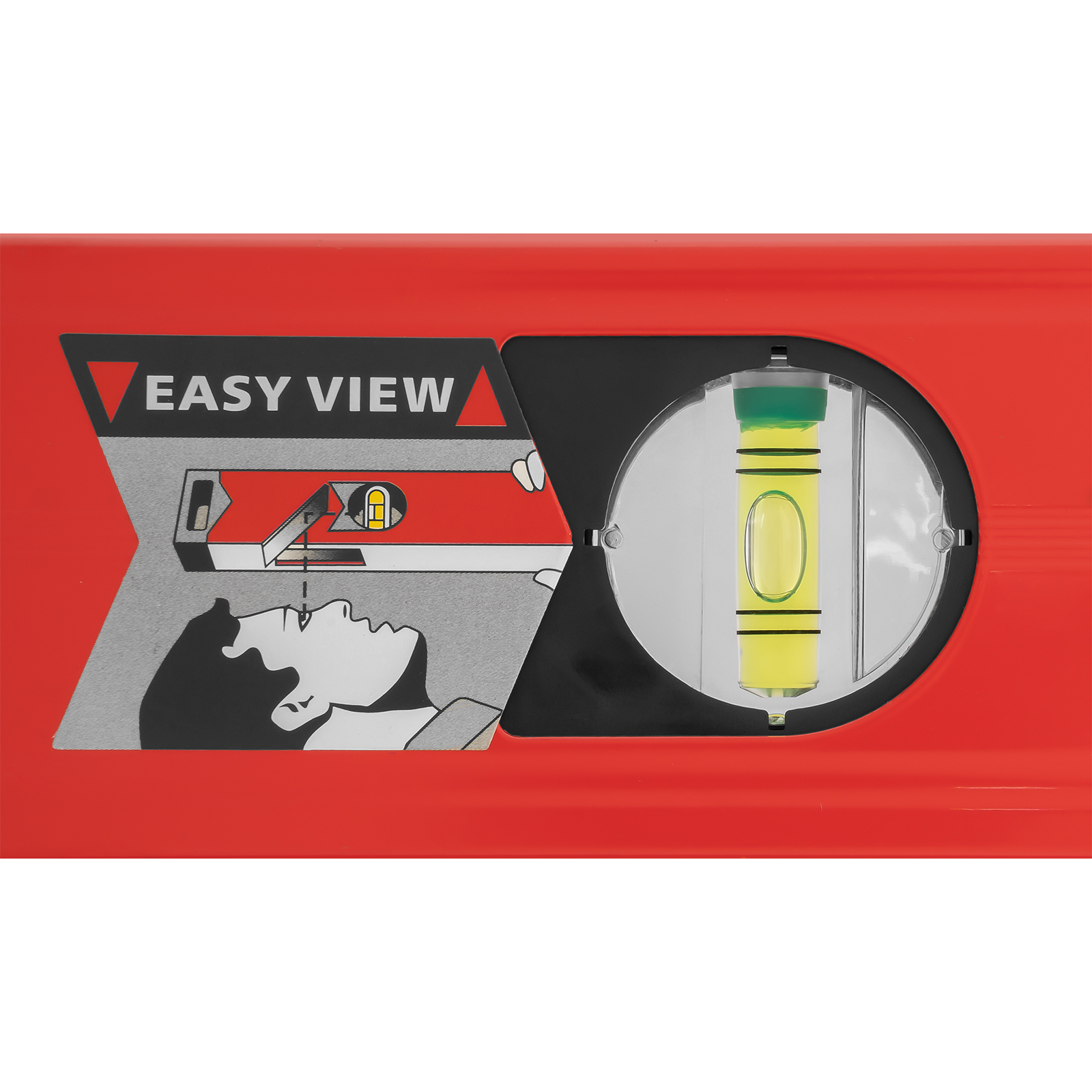 Уровень алюминиевый магнитный Matrix 34712 усиленной конструкции, длиной 1200 мм, с фрезерованной рабочей поверхностью, оснащен 3 глазками и одним зеркальным отражателем. Позволяет выявить отклонения от вертикали, горизонтали и угла 45°. Встроенный зеркальный глазок облегчает считывание показаний.