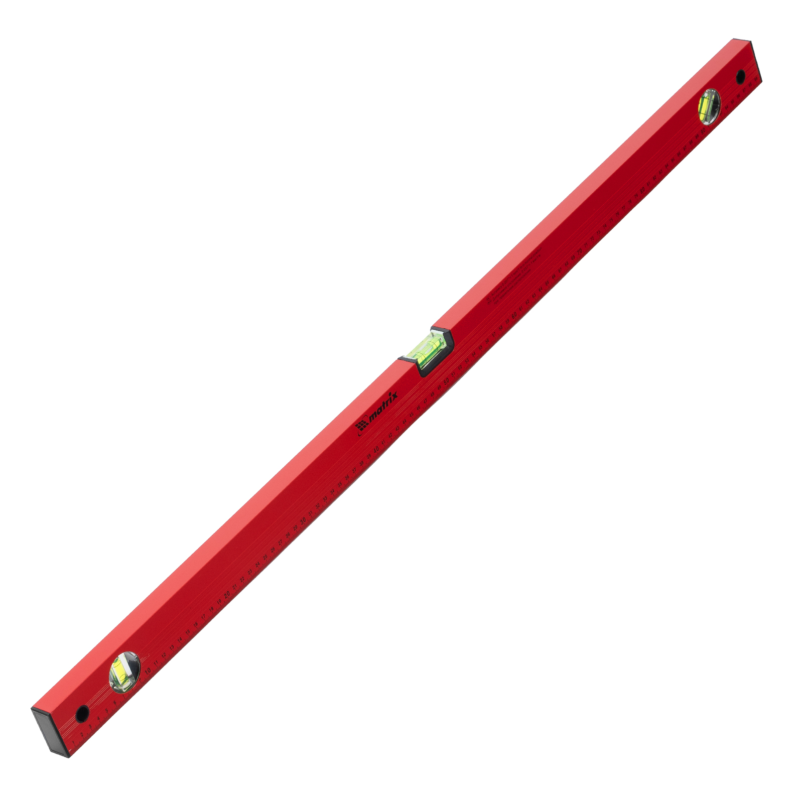 Алюминиевый уровень Matrix 33229 длиной 1000 мм, красного цвета, с 3 глазками и линейкой, пригодится при проведении строительных, ремонтных и монтажных работ. С ним повышается точность работы, что позволяет добиться качественного результата. Три колбы рассчитаны на проверку горизонтали, вертикали и угла 45 градусов, погрешность равна 1 мм/м (0,057 градуса).,Для определения отклонения вертикали 90 градусов необходимо использовать пузырьковую ампулу только в верхнем положении уровня. Только базовая поверхность является рабочей (противоположная ампуле 180 градусов).