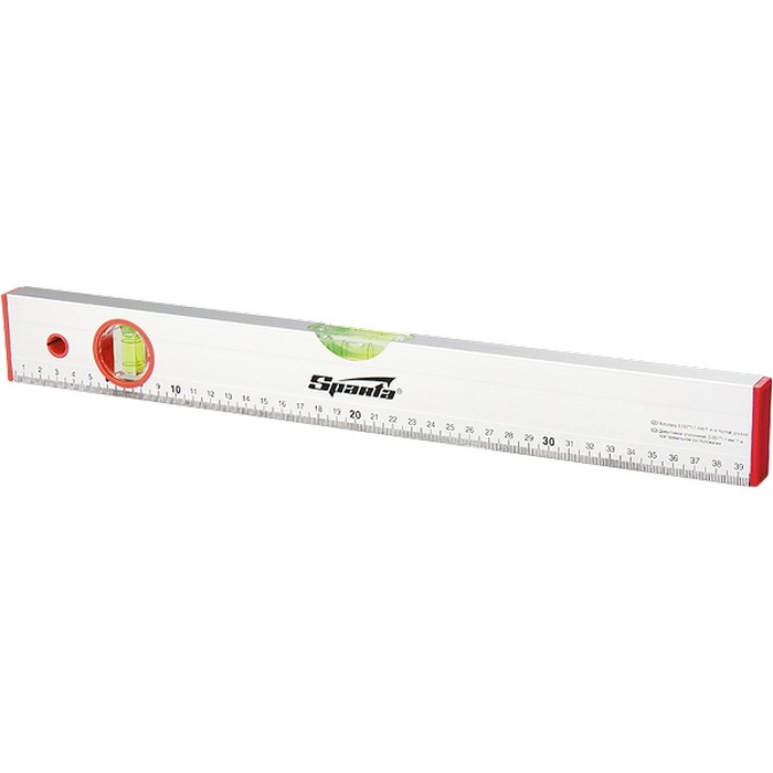 Алюминиевый уровень Sparta 35112 длиной 1200 мм, с 2 глазками и линейкой, рассчитан на применение в быту и в производственных условиях. Он поможет добиться точного выстраивания разметочных линий для последующей установки конструкций, полок, укладки облицовочных материалов и т.д. Две пузырьковые ампулы обеспечивают точный контроль отклонений поверхностей от горизонтальной и вертикальной плоскостей.,Для определения отклонения вертикали 90 градусов необходимо использовать пузырьковую ампулу только в верхнем положении уровня. Только базовая поверхность является рабочей (противоположная ампуле 180 градусов).
