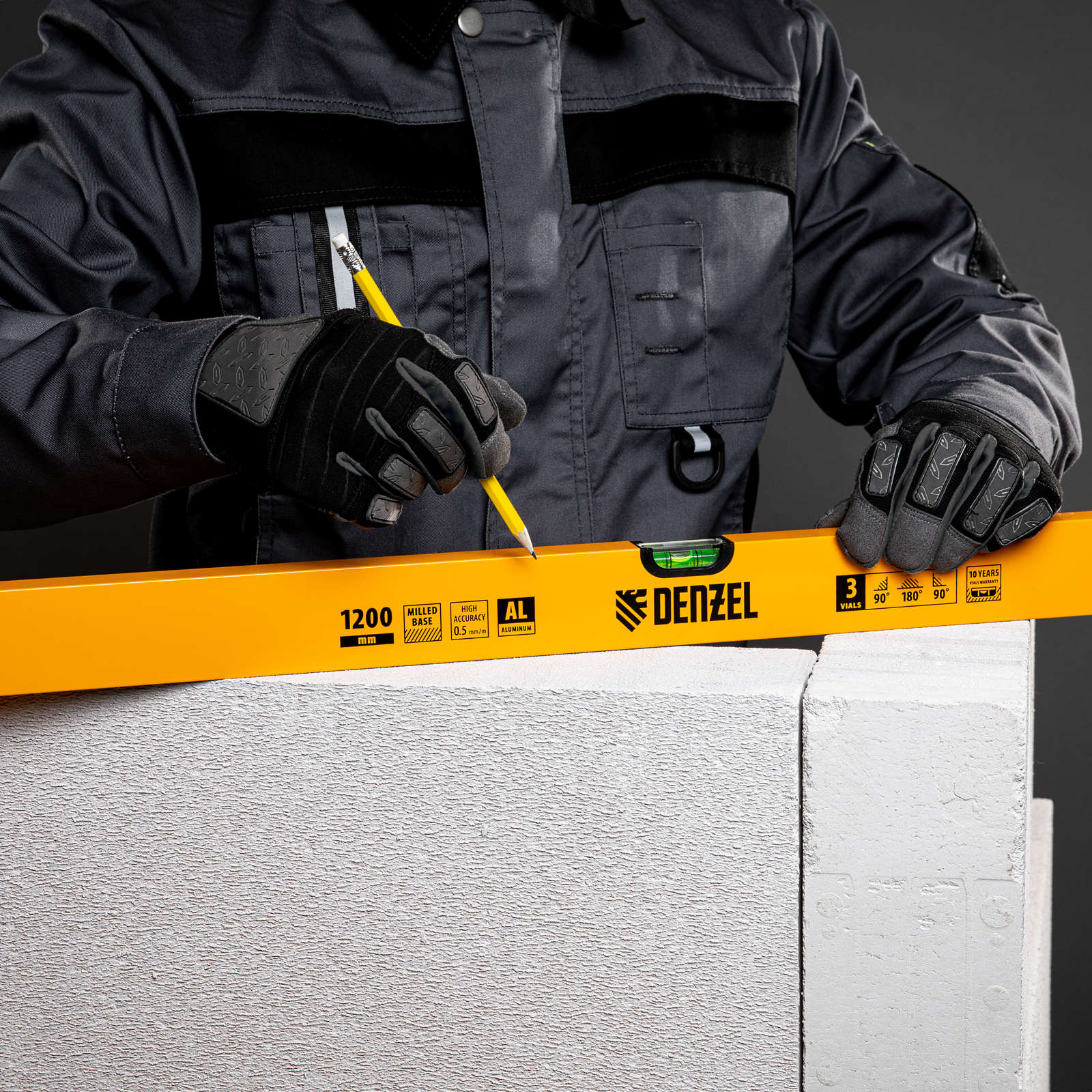 Алюминиевый фрезерованный уровень Denzel 33684 длиной 1200 мм, с 3 глазками, используется для контроля вертикальных и горизонтальных плоскостей. Позволяет получить качественный результат при выполнении строительных и отделочных работ.