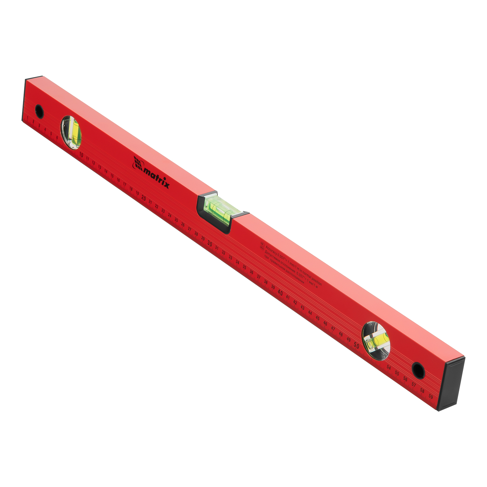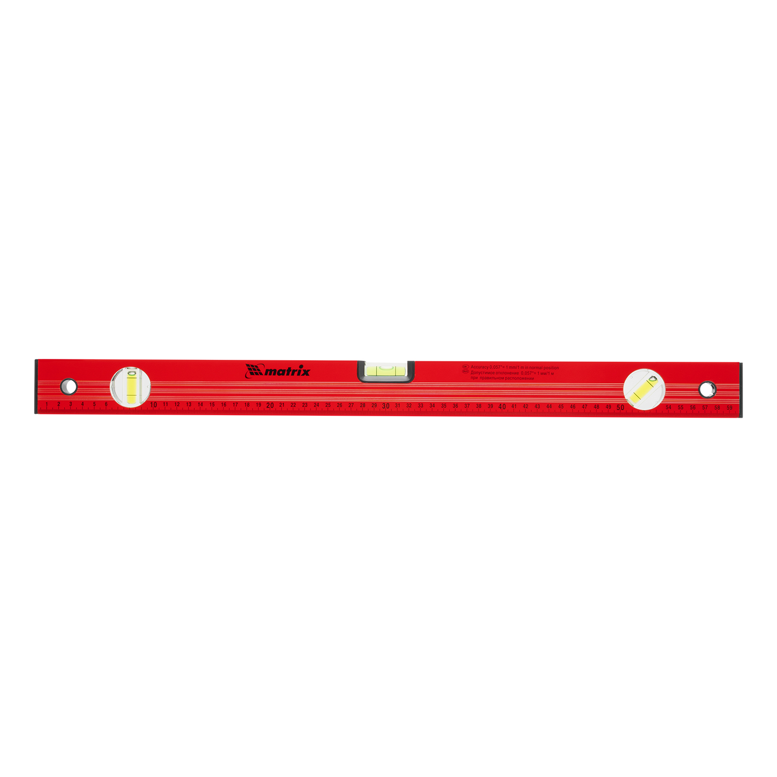 Уровень алюминиевый, 600 мм, 3 глазка, красный, линейка Matrix в Воронеже