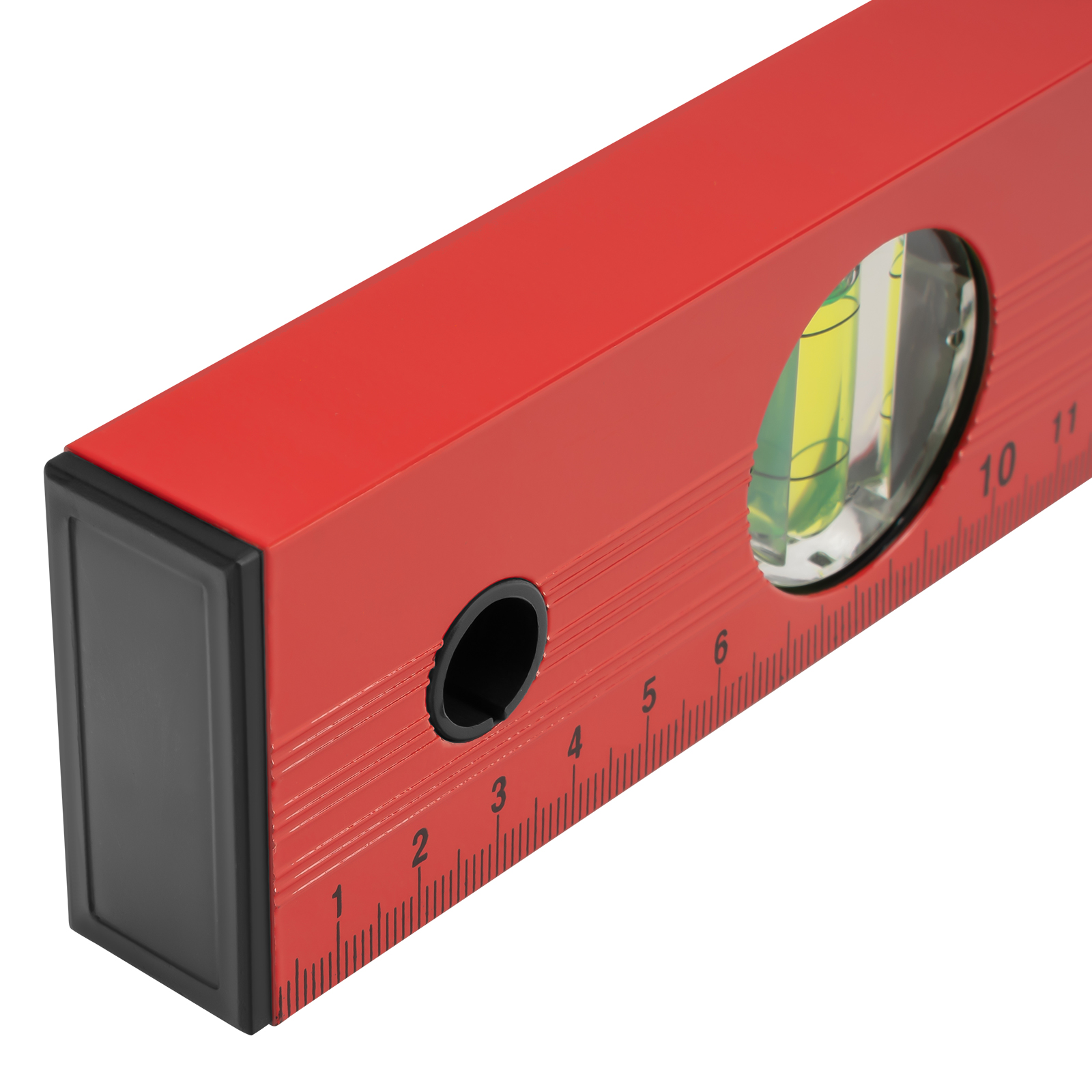 - Мерная шкала на корпусе уровня позволяет использовать его в качестве линейки.