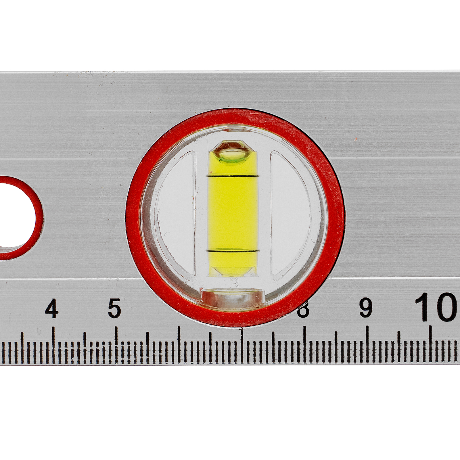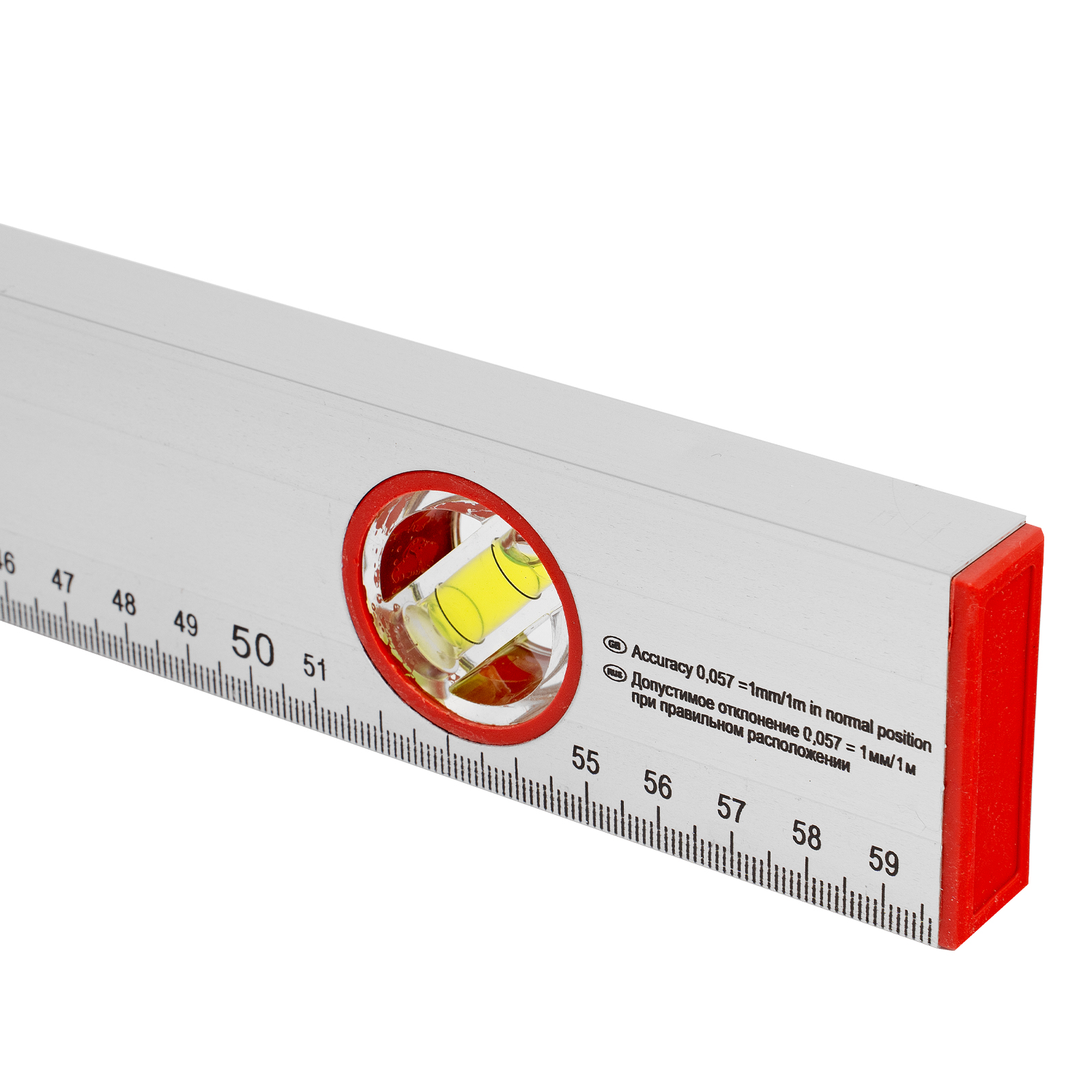 Алюминиевый уровень Sparta 331235 длиной 600 мм, с 3 глазками и линейкой, используется на строительной площадке и во время ремонта. Повышает точность выполнения облицовочных, отделочных и других работ, позволяя проверить отклонения по горизонтали и вертикали, измерить угол наклона, выровнять поверхности и предметы.