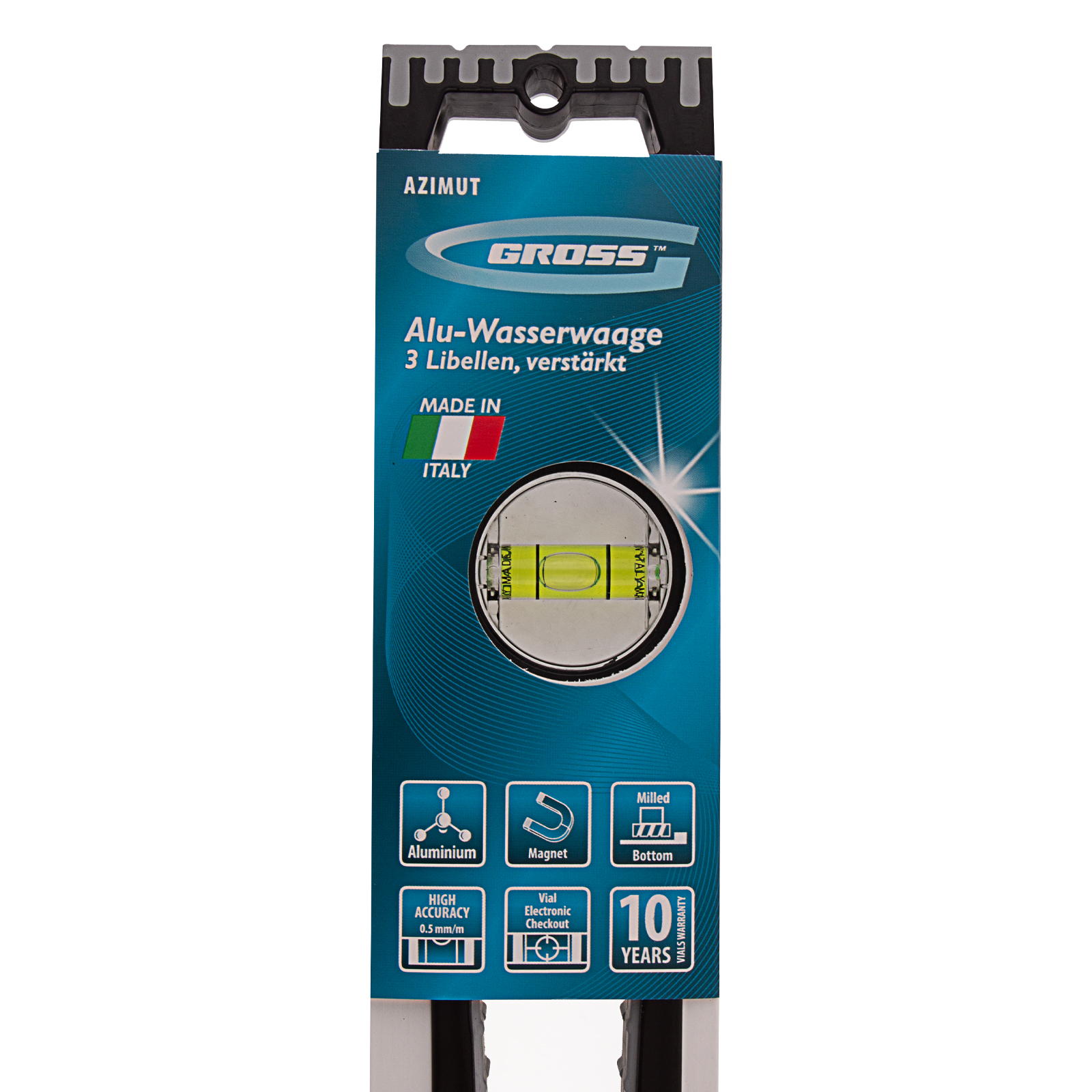 Усиленный алюминиевый уровень Gross 34370 длиной 600 мм, с рукоятками и 3 глазками, фрезерованный, магнитный, — это простой и универсальный инструмент для проверки горизонтали и вертикали. Благодаря качественному исполнению инструмент обеспечивает высокую точность работы.