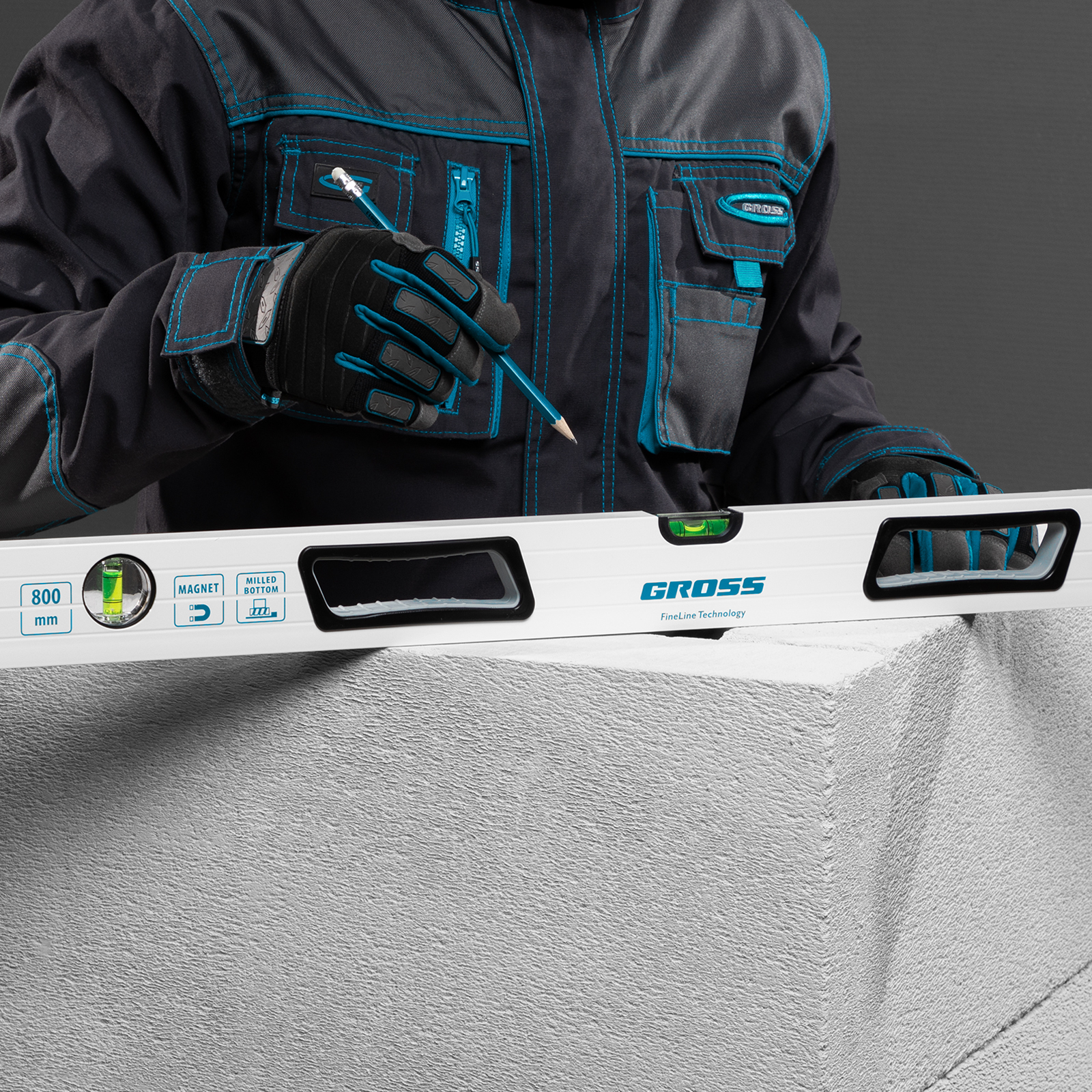 Уровень алюминиевый, 800 мм, усиленный, рукоятки, фрезерованный, 3 глазка, магнитный Gross в Воронеже