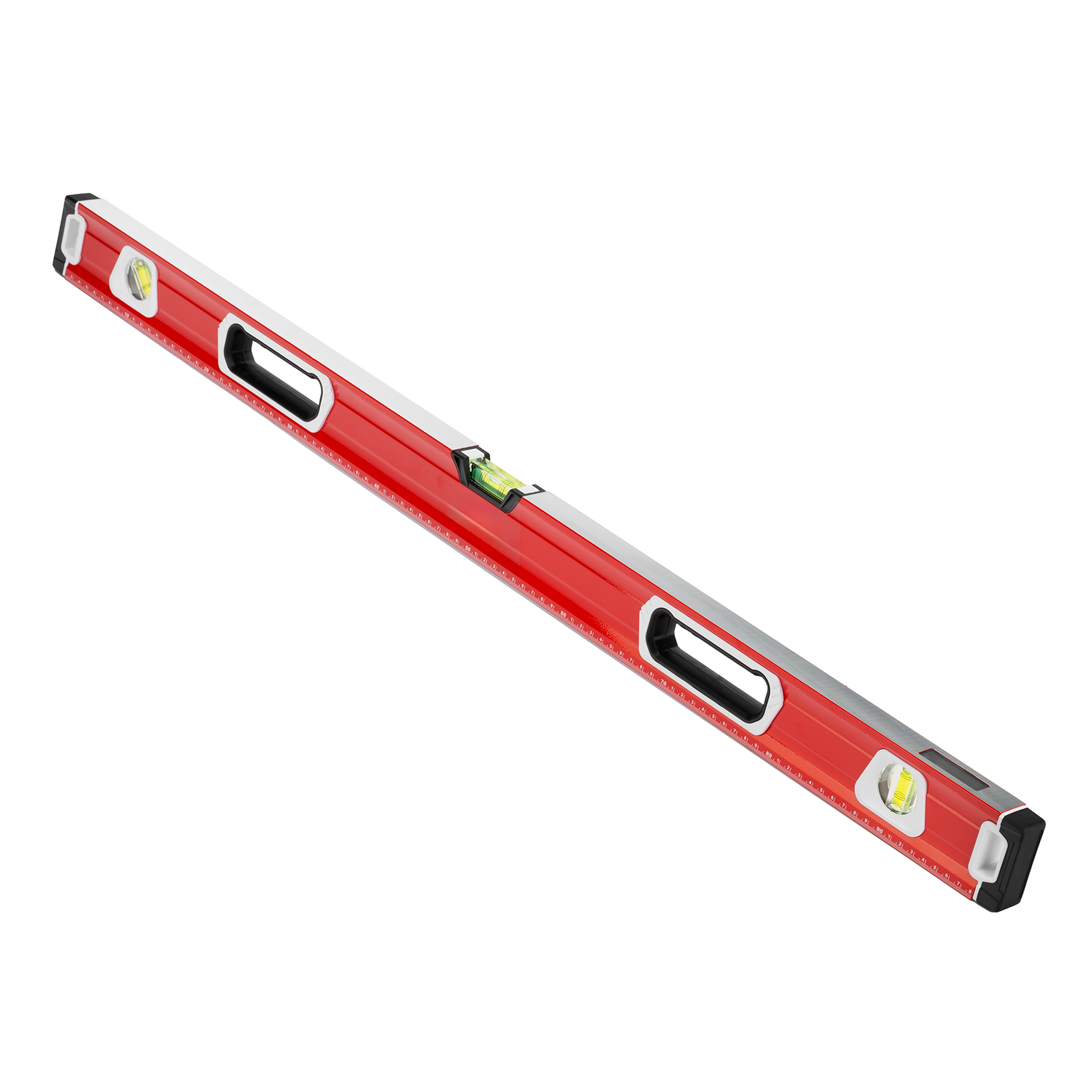 Уровень алюминиевый фрезерованный Matrix 34733 длиной 1000 мм, с магнитной полосой и 2-компонентными рукоятками, 3 глазками и 1 зеркальным отражателем, — измерительный инструмент для контроля отклонений поверхностей от горизонтали, вертикали и угла 45°. Используется для выполнения работ, требующих высокой точности.