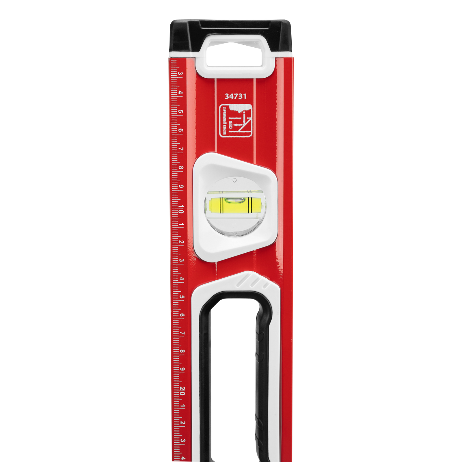 Алюминиевый уровень Matrix 34731 длиной 600 мм, магнитный, фрезерованный, с двухкомпонентными рукоятками, 3 глазками и 1 зеркальным отражателем, относится к категории измерительных инструментов. Служит для контроля отклонений поверхностей от горизонтали, вертикали и угла 45 градусов. Инструмент понадобится при осуществлении работ, требующих высокой точности.,Для определения отклонения вертикали 90 градусов необходимо использовать пузырьковую ампулу только в верхнем положении уровня. Только базовая поверхность является рабочей (противоположная ампуле 180 градусов).