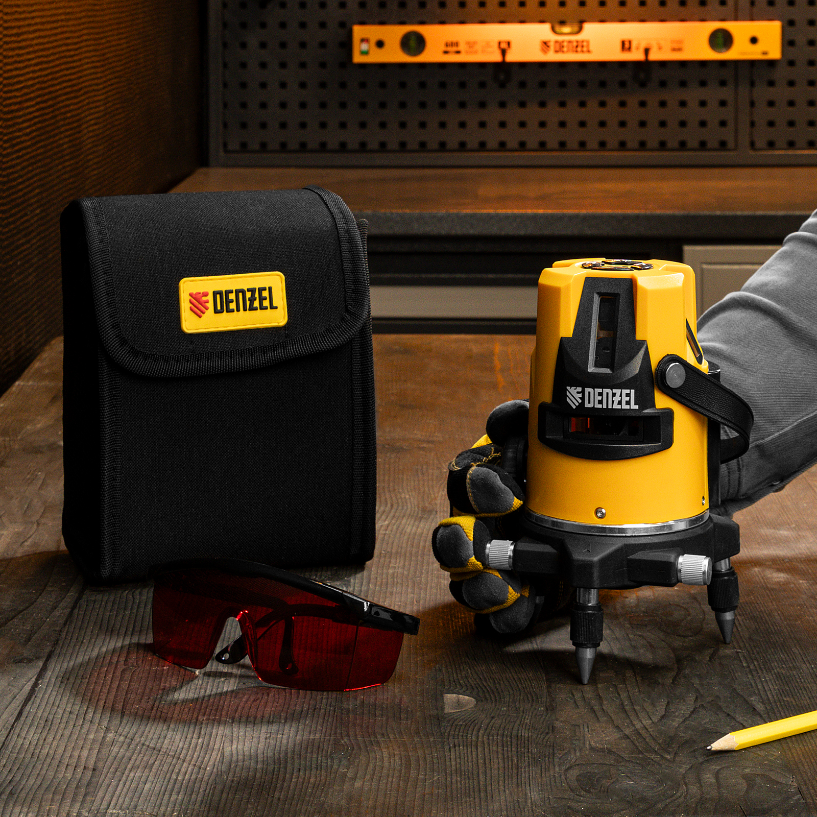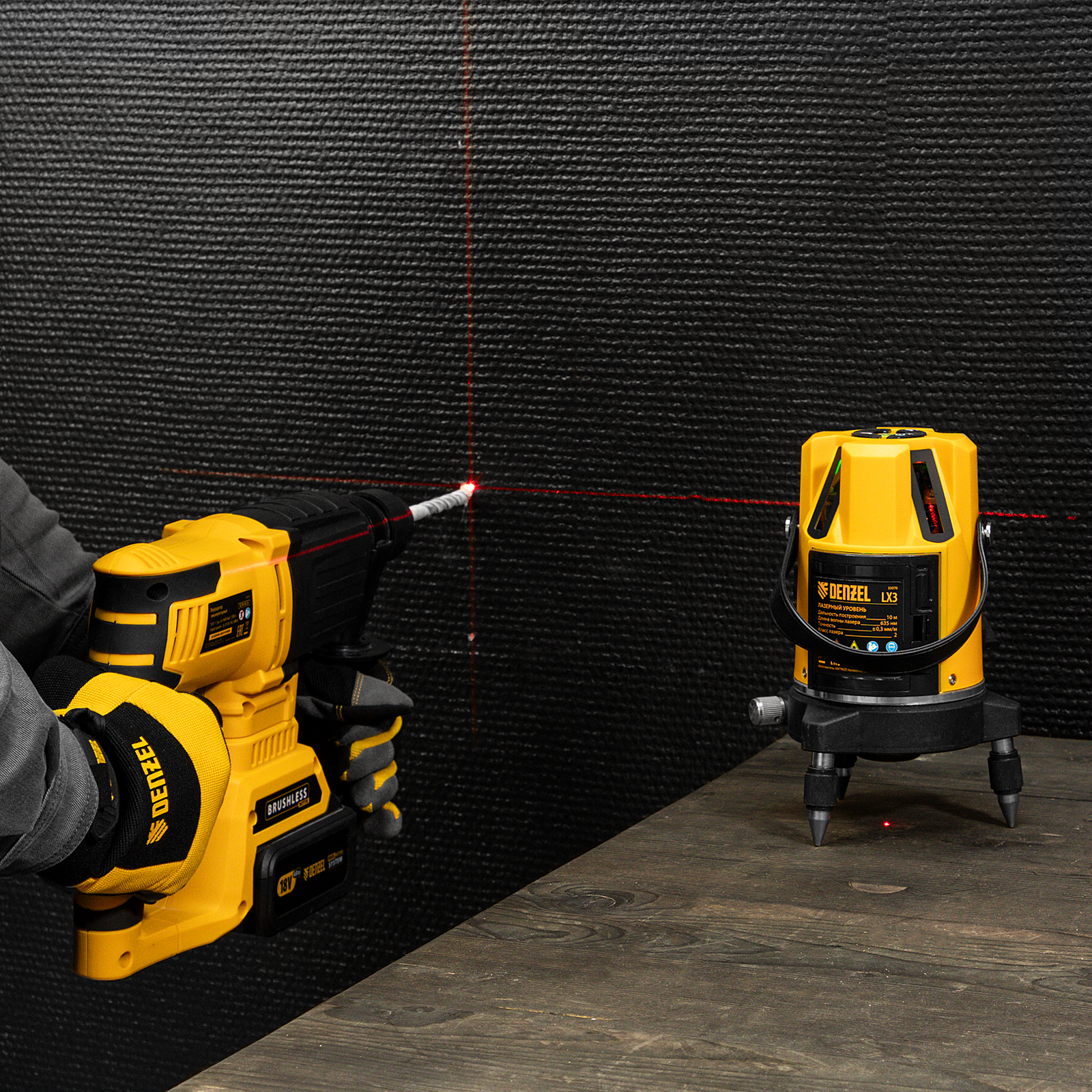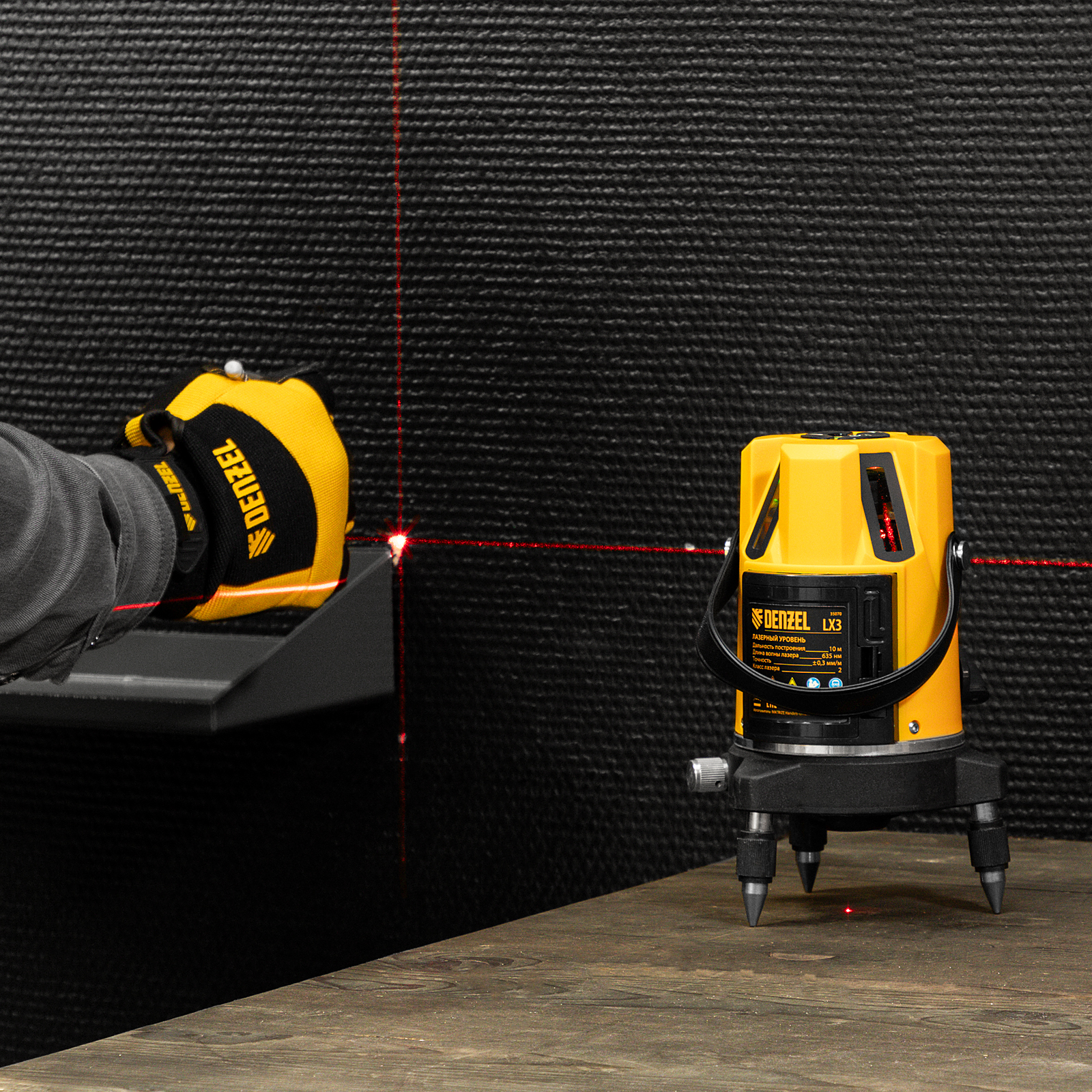 Лазерный уровень LX3, 10 м, ± 0,3 мм/1 м, 635 нм, 4 вертикальных, 1 горизонтальная плоскости, резьба 5/8" Denzel в Воронеже