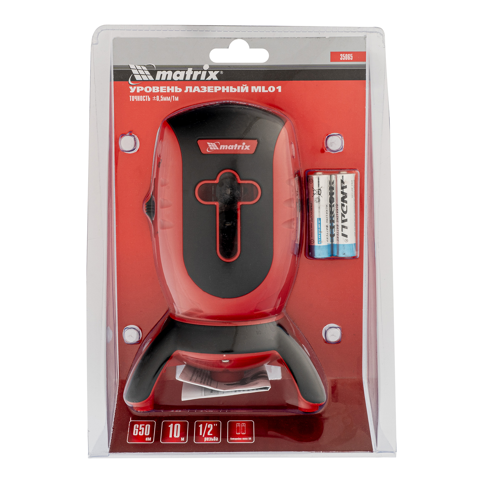Лазерный уровень Matrix ML01 35065 с длиной луча 650 нм, с резьбой диаметром 5/8" под штатив, предназначен для построения и контроля линий разметки на расстоянии до 10 м с точностью ±0,5 мм/1 м. Он проецирует горизонтальную или вертикальную линии, а также крест. Для питания требуется 2 батарейки формата AA. Уровень облегчает и ускоряет процесс строительных и ремонтных работ, поскольку позволяет ровно уложить кирпич, произвести облицовку стен, установить окна и двери или повесить на стену картину и полку.