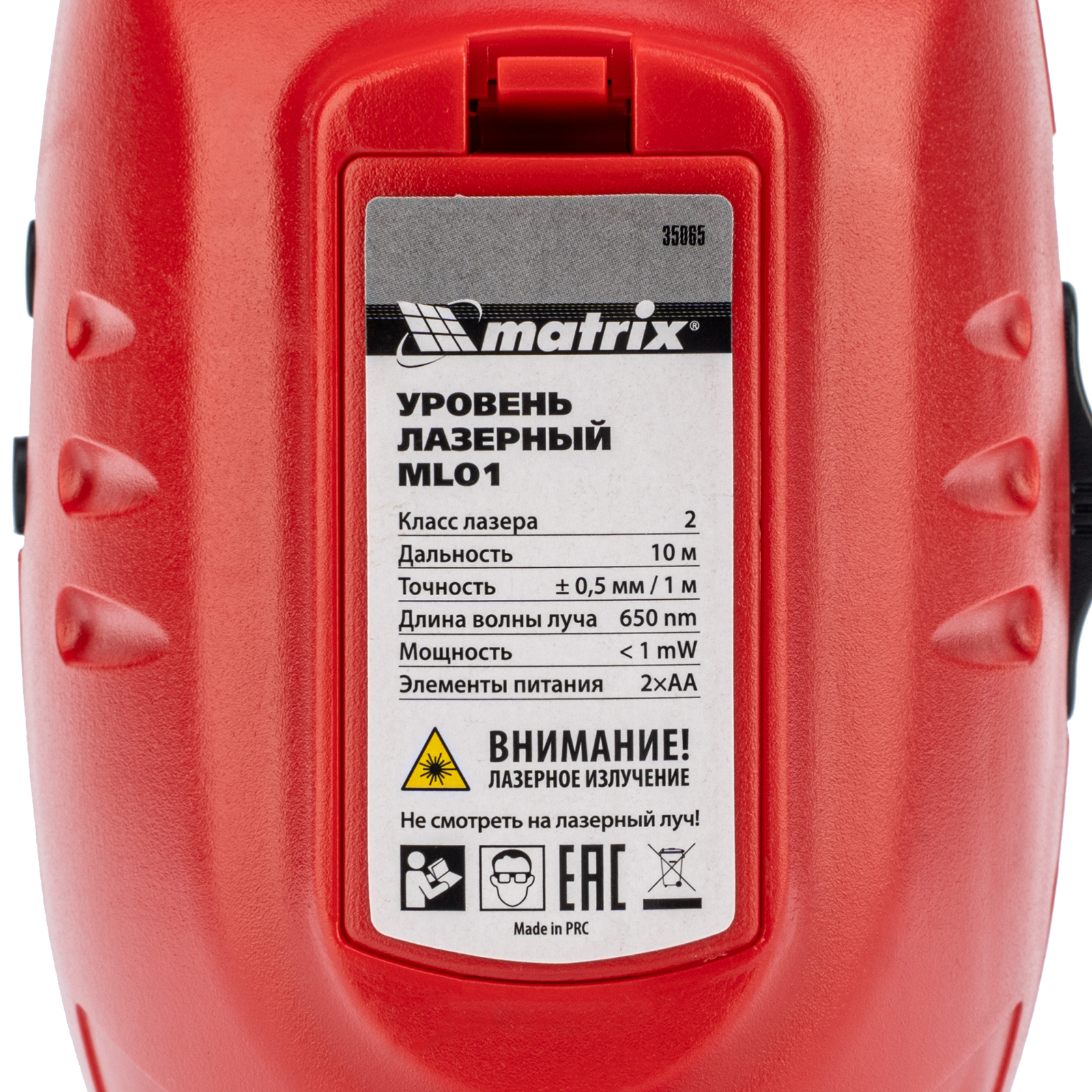 Лазерный уровень ML01T, дальность 10 м, точность ± 0,5 мм, / 1 м, длина волны 650 нм, проекция 1 вертикальная 1 горизонтальная плоскость, резьба под штатив 5/8" Matrix в Воронеже