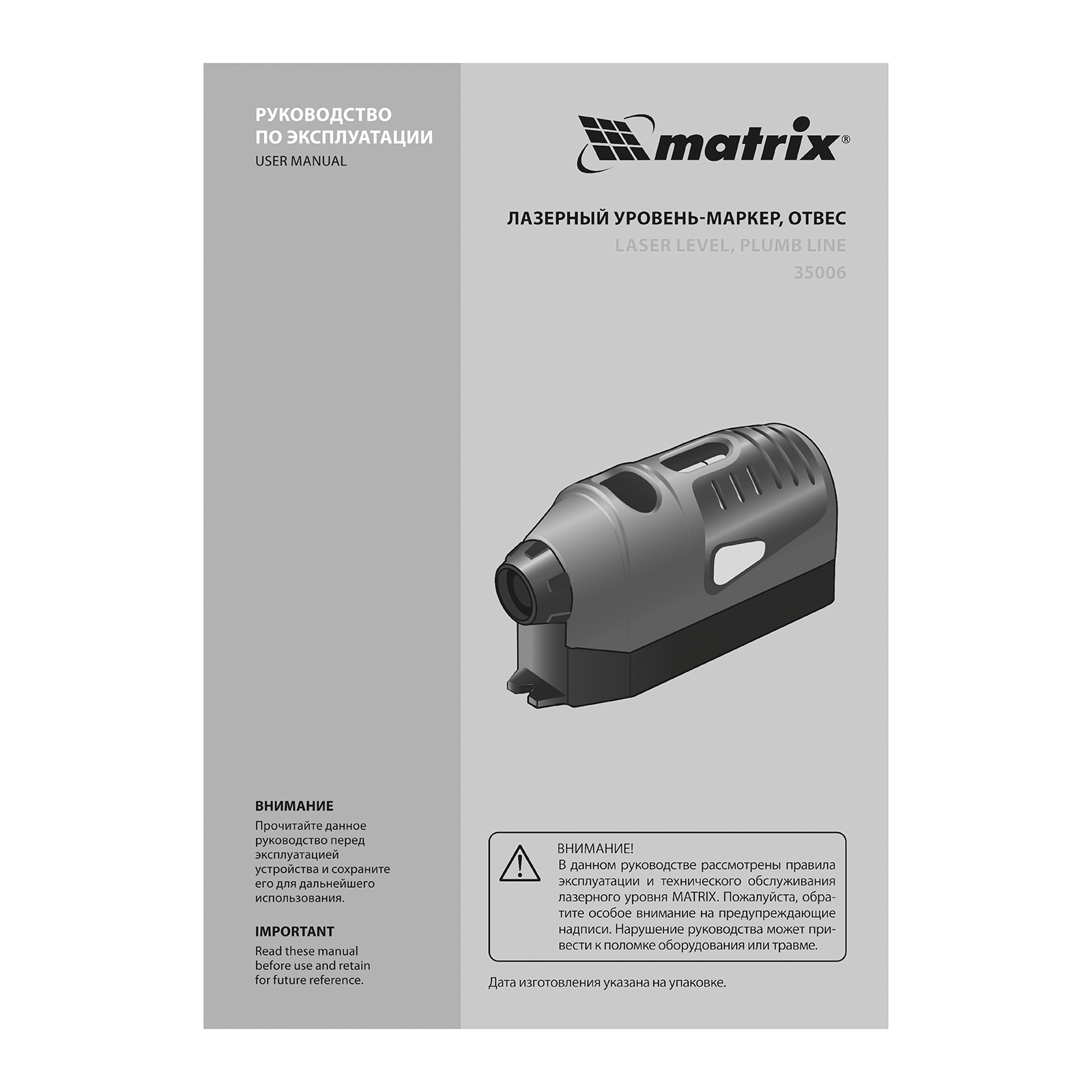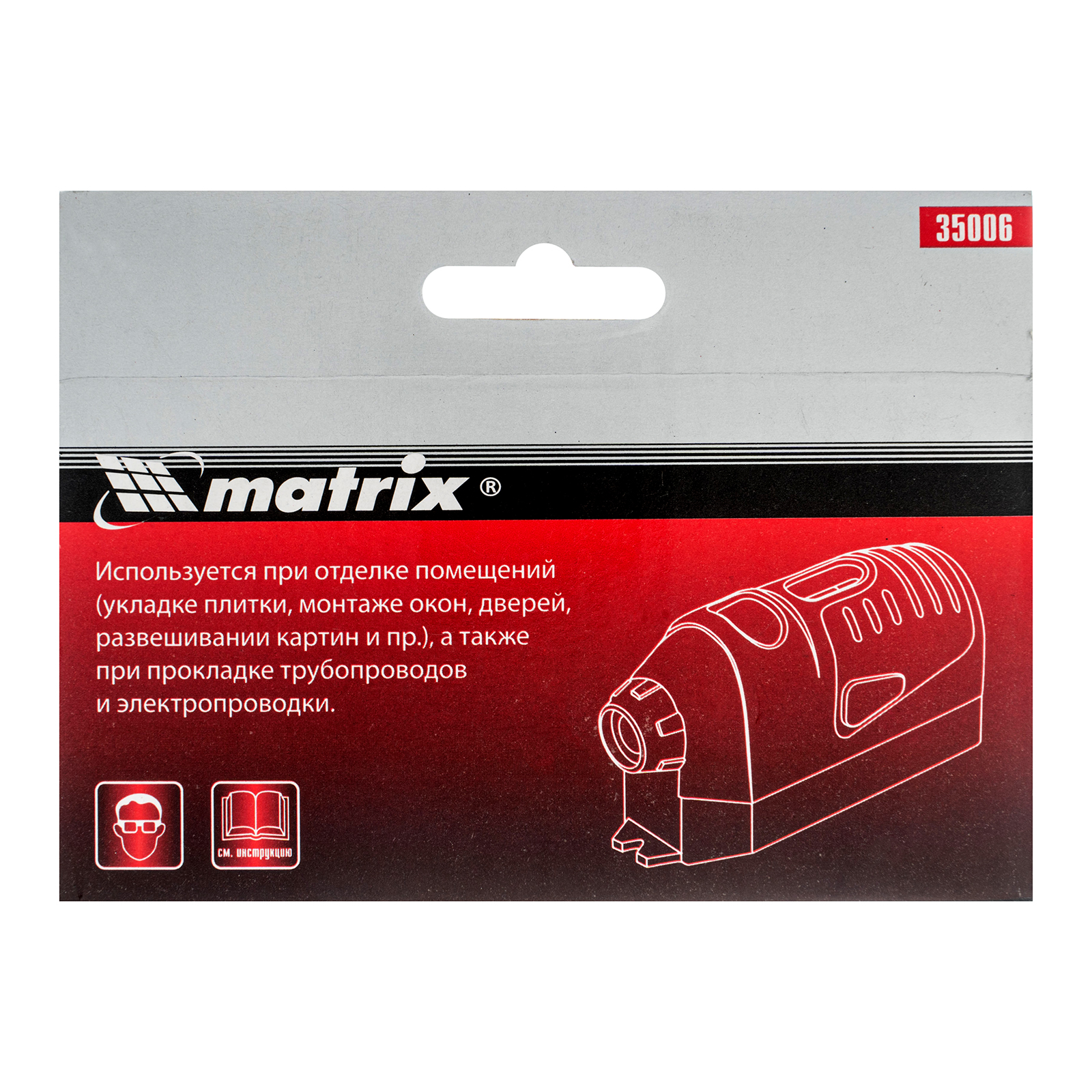 Лазерный уровень Matrix 35006 — альтернатива самовыравнивающимся моделям, может использоваться как отвес или лазерный маркер. Лазерный луч проецирует точку на поверхности, что позволяет переносить метки на плоскость, выравнивая уровень по двум пузырьковым указателям.