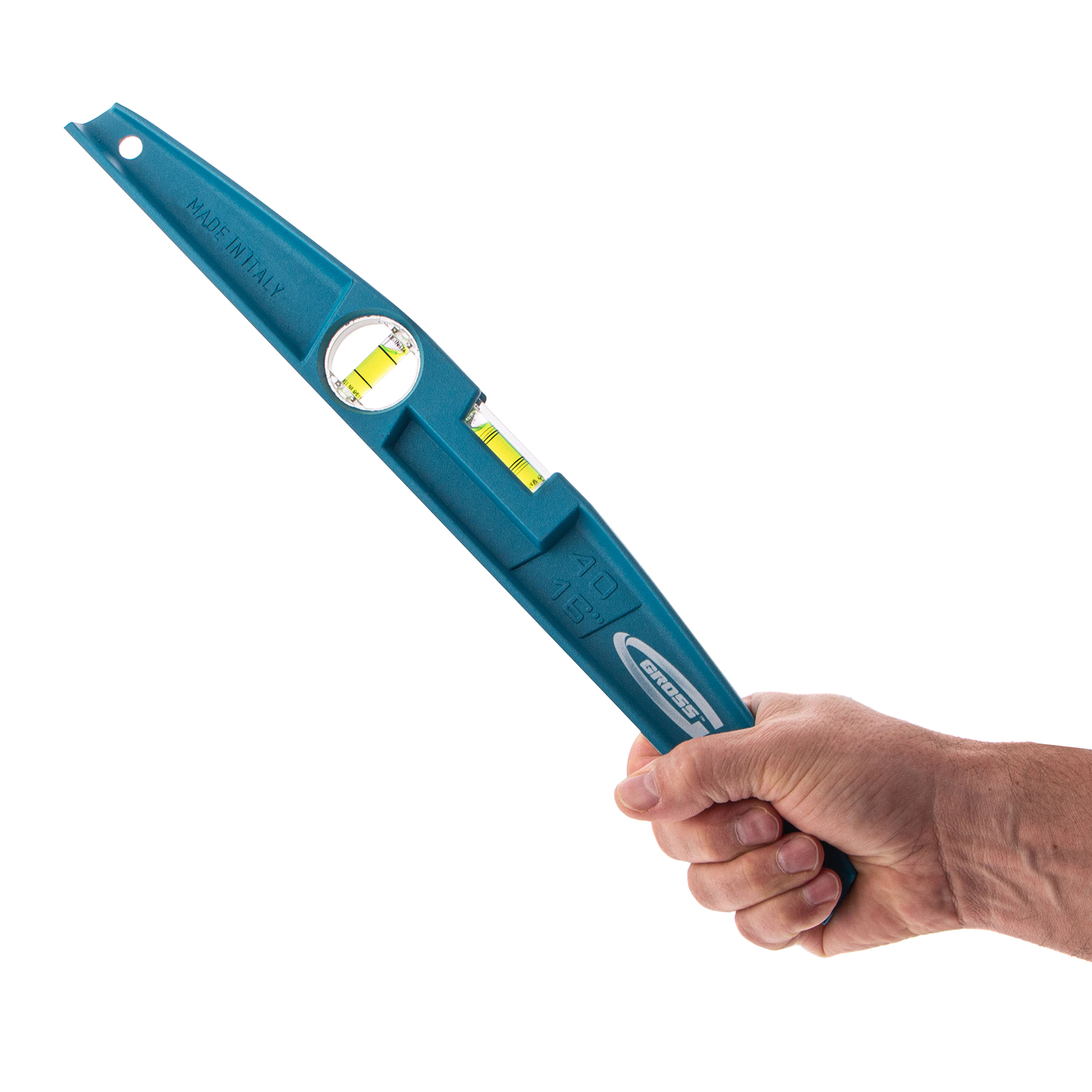 Литой уровень Gross 34914 длиной 400 мм снабжен 2 глазками для построения вертикали и горизонтали. Инструмент оптимально подходит для использования при укладке напольной и настенной плитки, кирпичной кладки, брусчатки и т.д.
