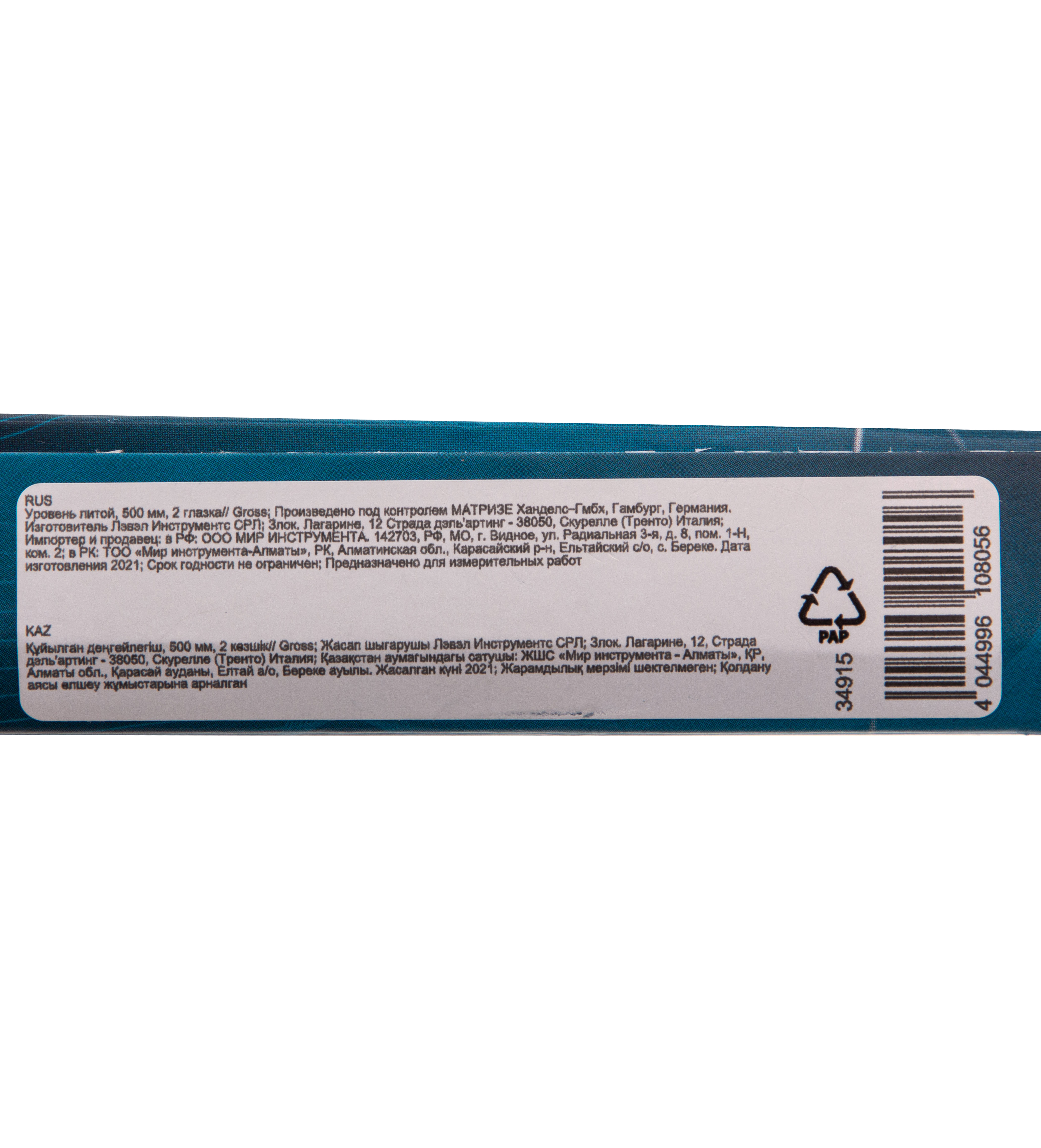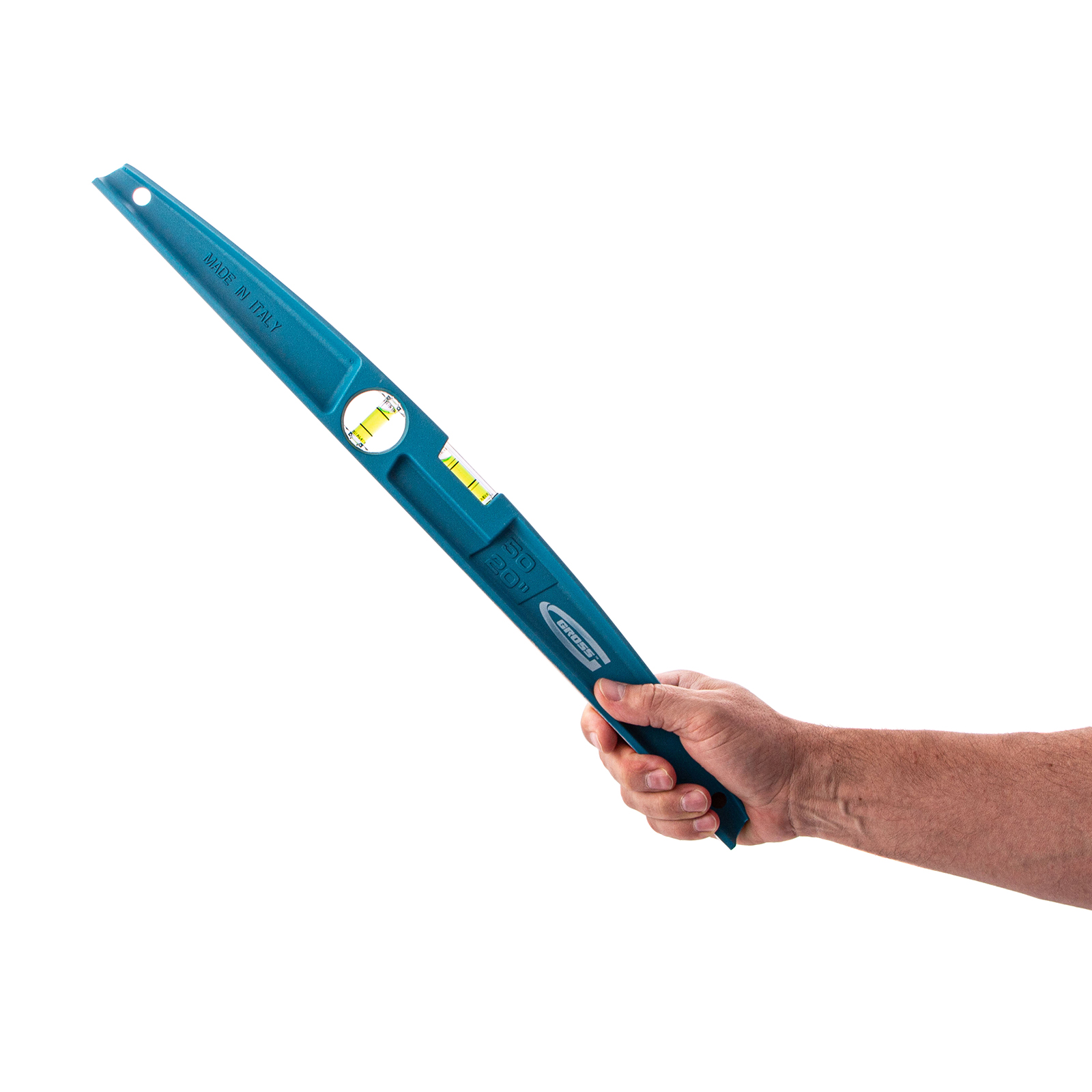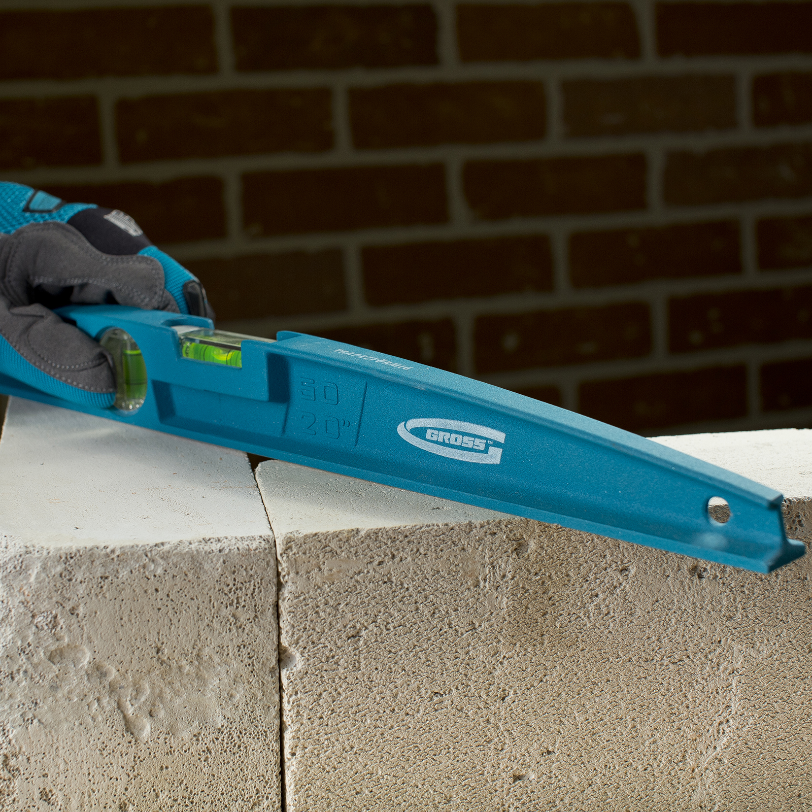 Литой уровень Gross 34915 длиной 500 мм снабжен 2 глазками для построения вертикали и горизонтали. Инструмент оптимально подходит для использования при укладке напольной и настенной плитки, кирпичной кладки, брусчатки и т.д.