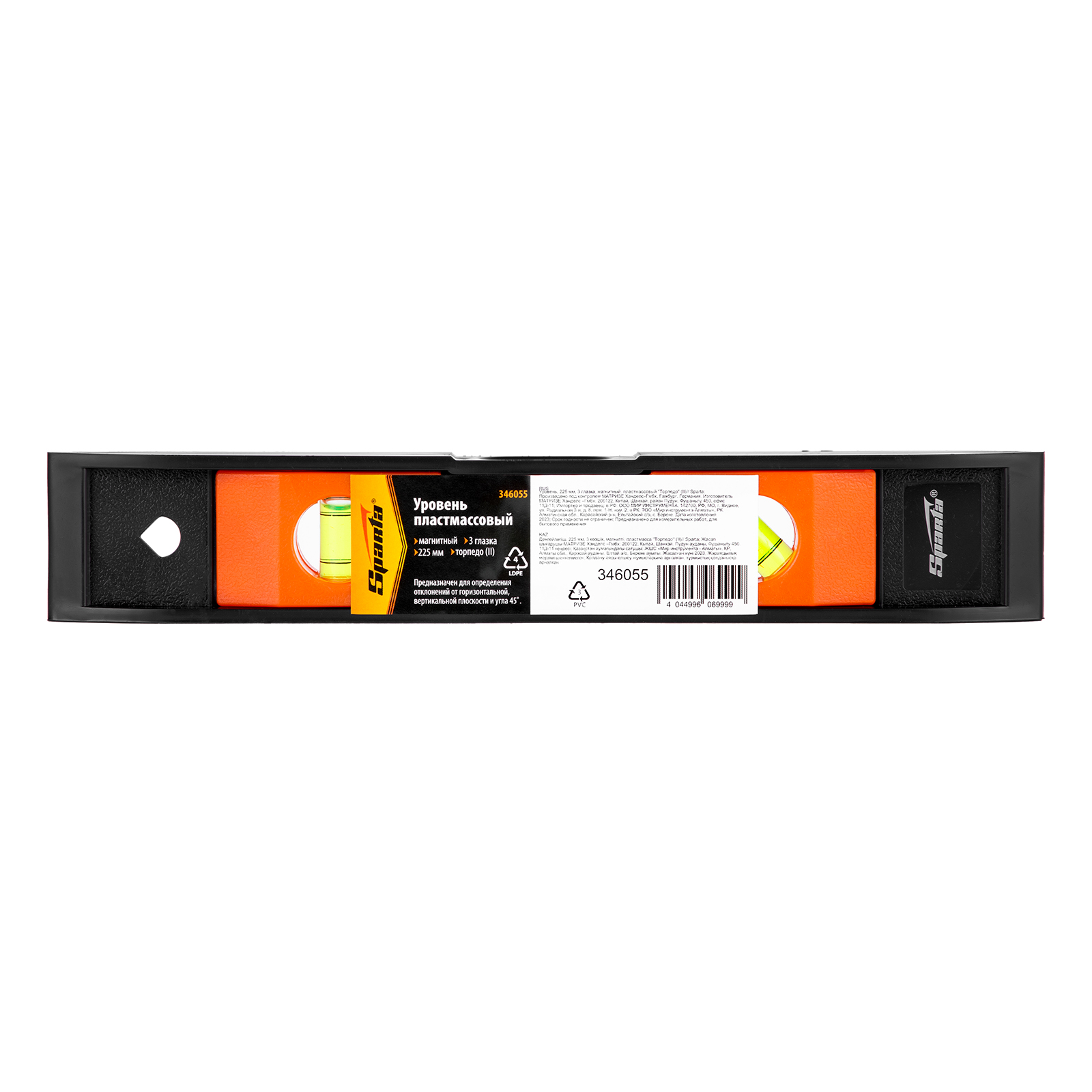 Уровень, 225 мм, 3 глазка, пластмассовый "Торпедо" (II) Sparta в Воронеже