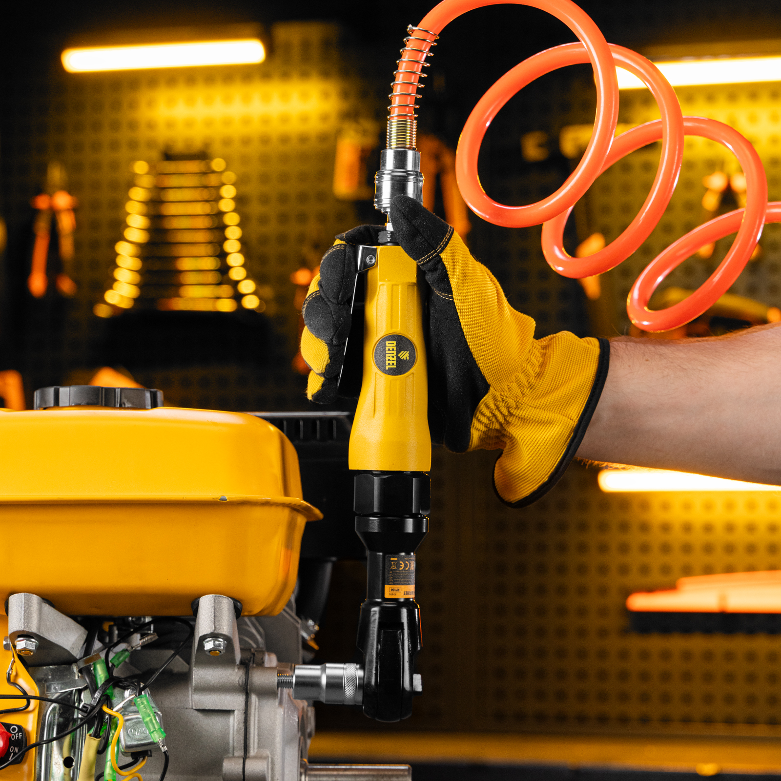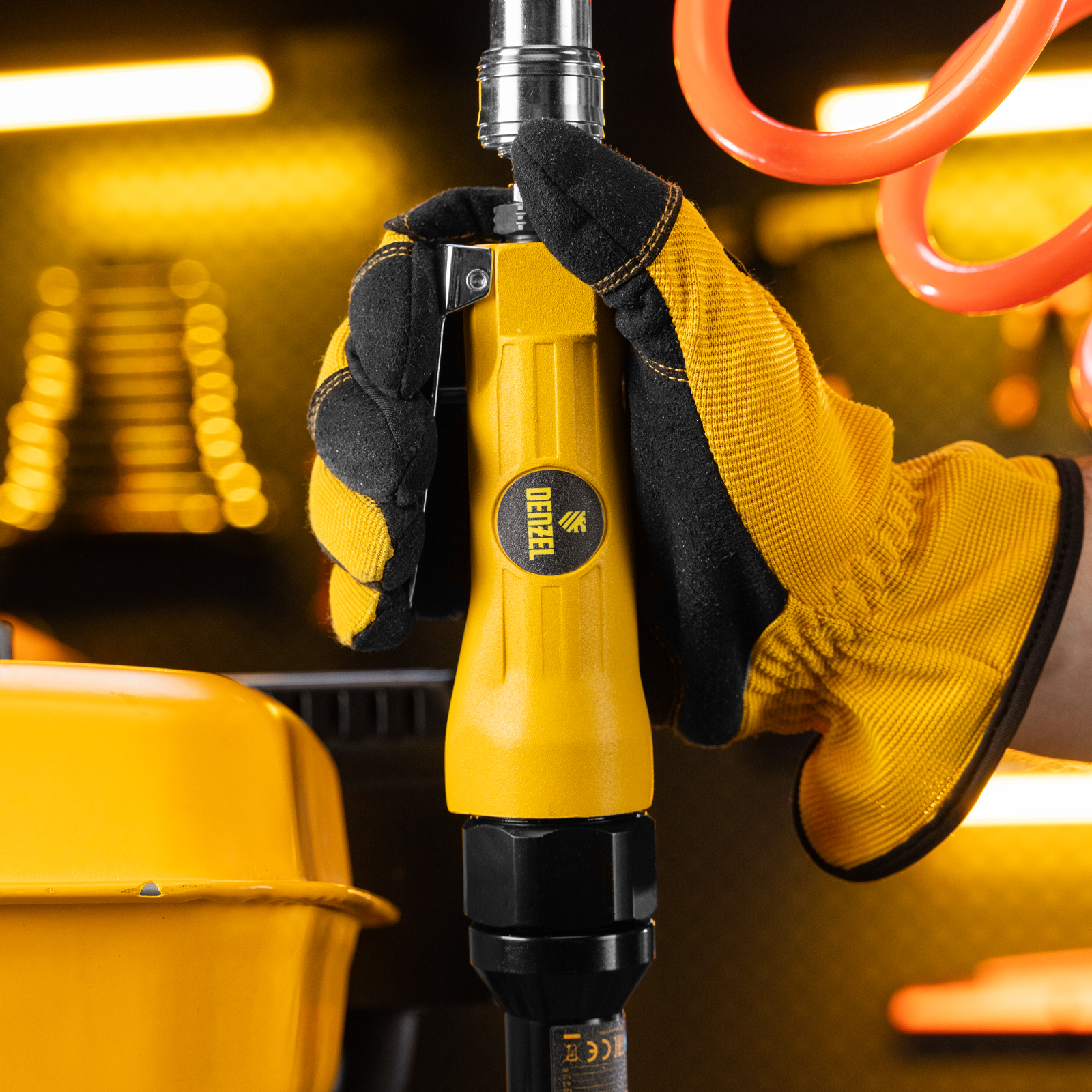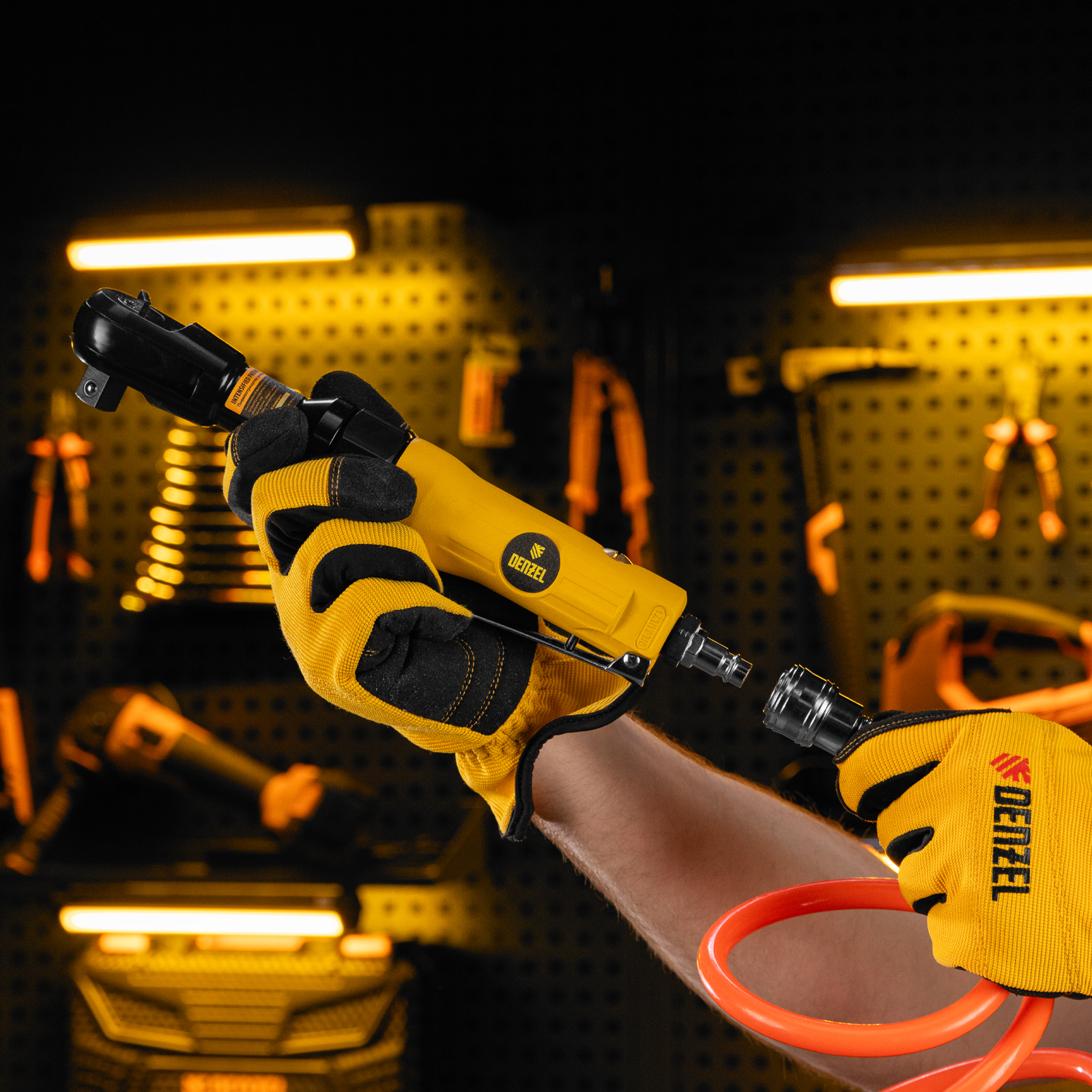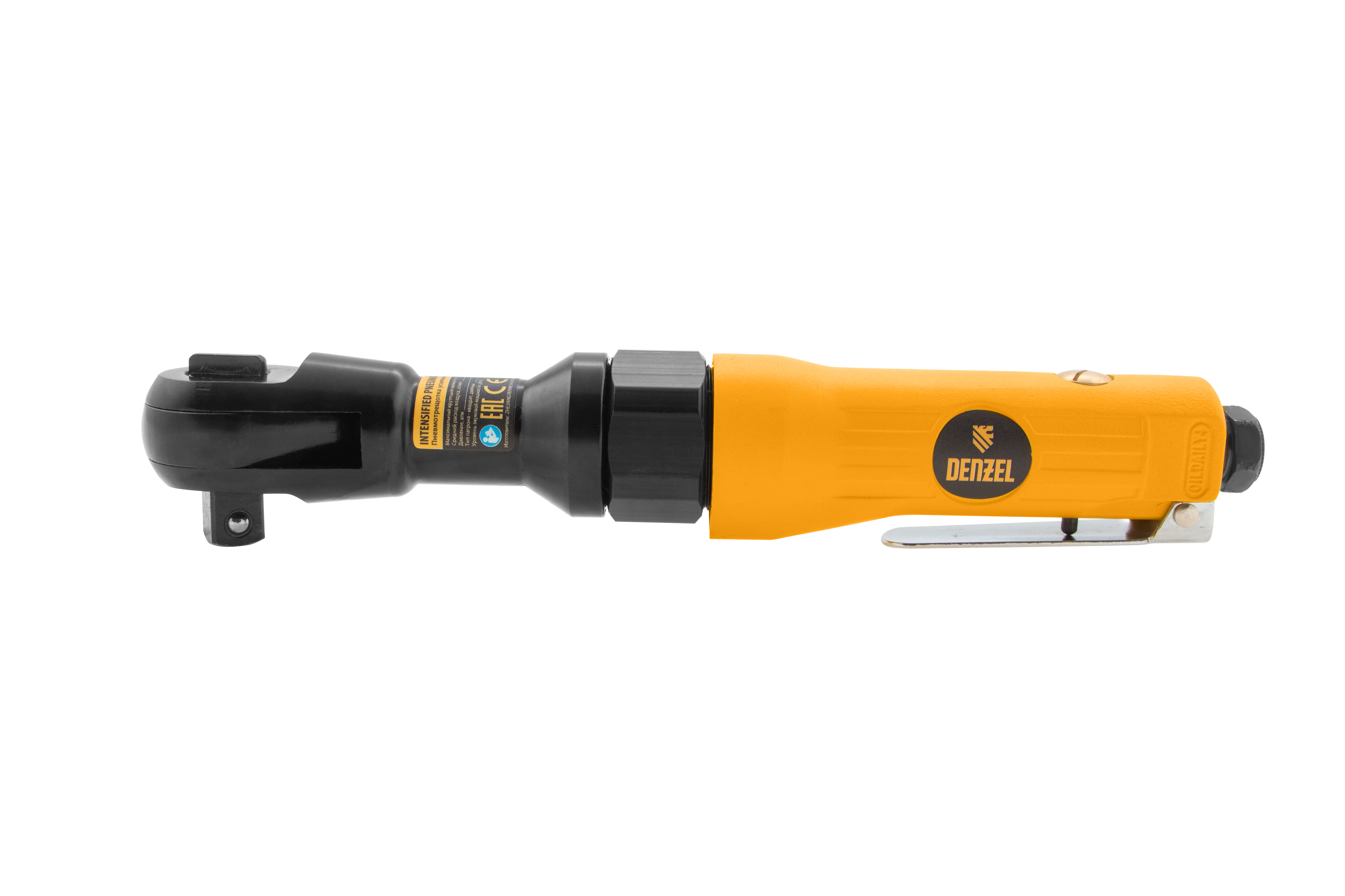 Усиленная пневмотрещотка Denzel RP100 57475, 160 об/мин, с квадратным хвостовиком 1/2 дюйма, — незаменимый помощник в автосервисе, слесарном цехе, на шиномонтаже, в частной мастерской и в любом деле, где нужен монтаж и демонтаж резьбового крепежа. Крутящий момент 100 Нм позволяет аккуратно работать с мелкими крепежными элементами без риска их повреждения и оперативно справляться со сложными, тугими соединениями. Применение трещотки в быту или промышленности позволяет сэкономить время и силы мастера.,Инструмент предназначен для работы при давлении 6,3 бар, расход воздуха в среднем не превышает 200 л/мин. Во время работы не забывайте использовать специальное масло ISO 46, которое можно добавлять как напрямую в инструмент, так и с помощью блока подготовки воздуха Denzel 57469, включающего в себя лубрикатор для автоматической подачи масла.