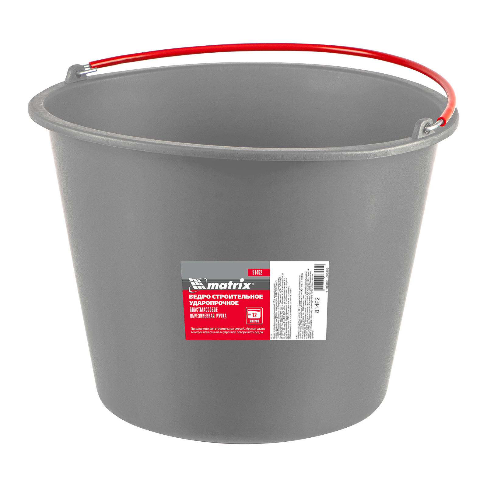 Ведро строительное пластмассовое 12 л, ударопрочное, обрезиненная ручка Matrix в Воронеже