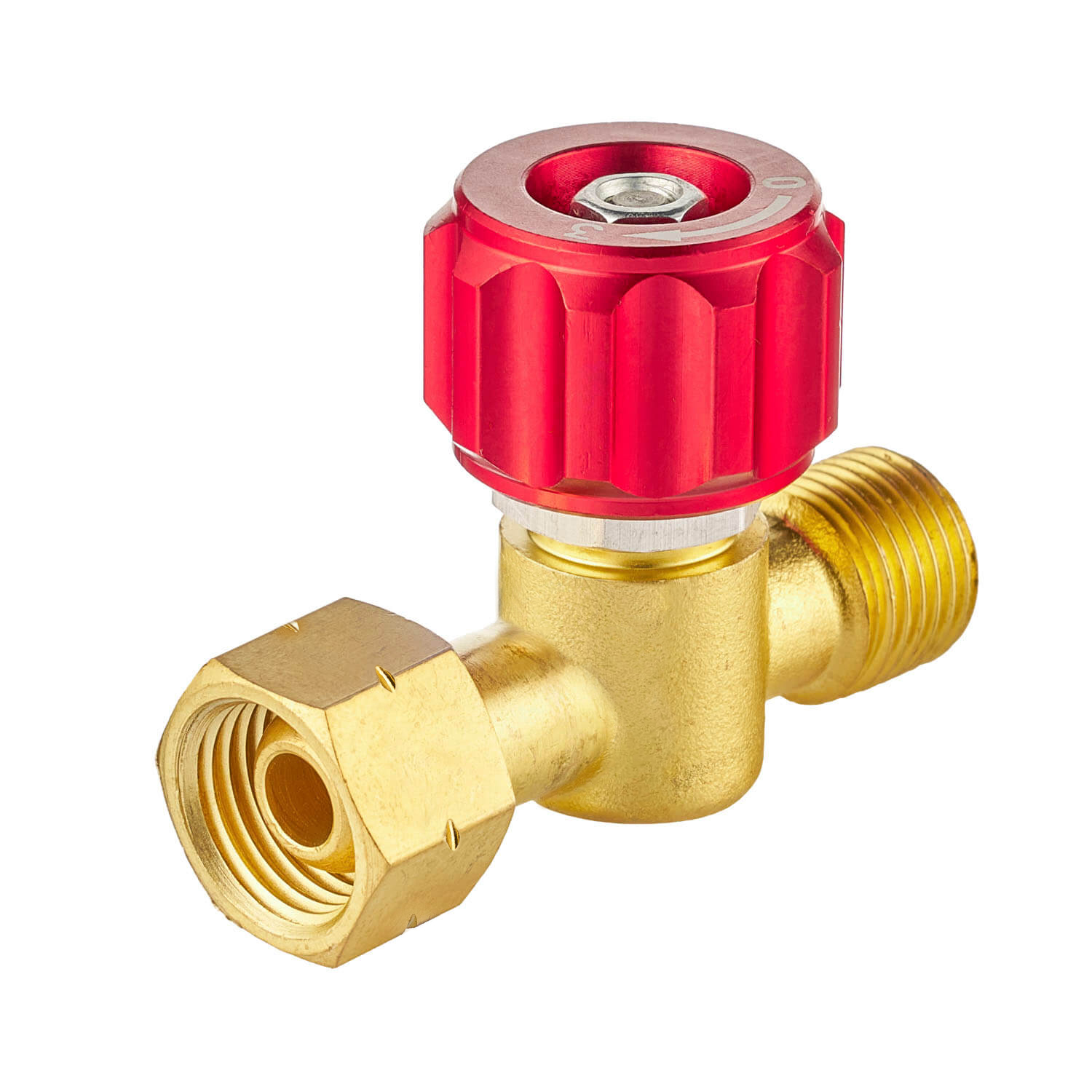 Вентиль ГГ изготовлен из латуни. Красный барашек изготовлен из алюминия и имеет лазерную гравировку на торцевой части с информацией о направлении закрытия (буква «З») и открытия (буква «О») вентиля.