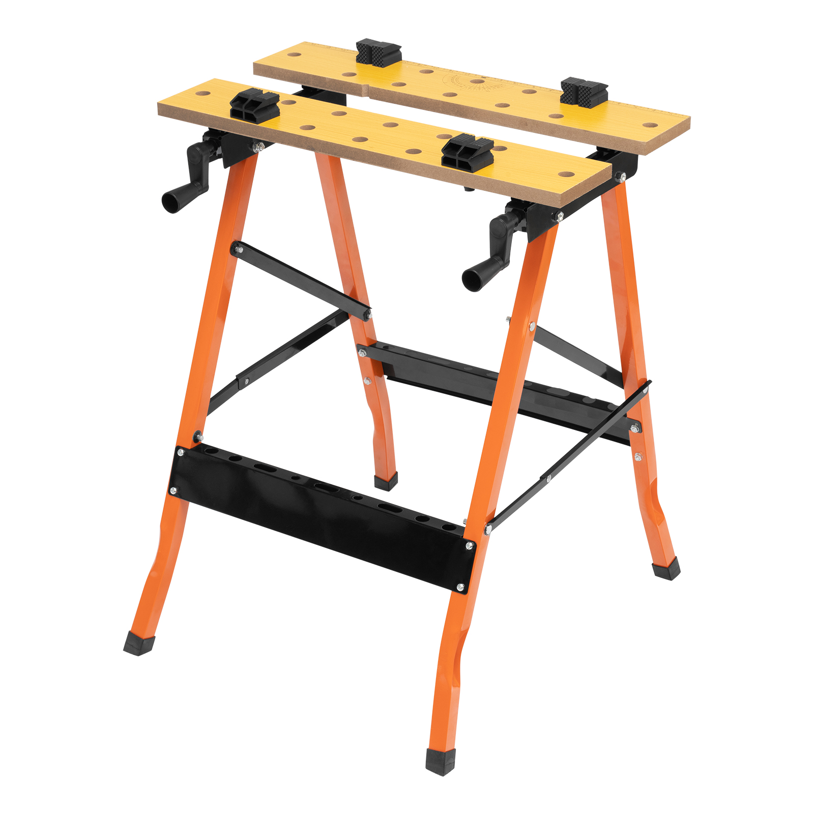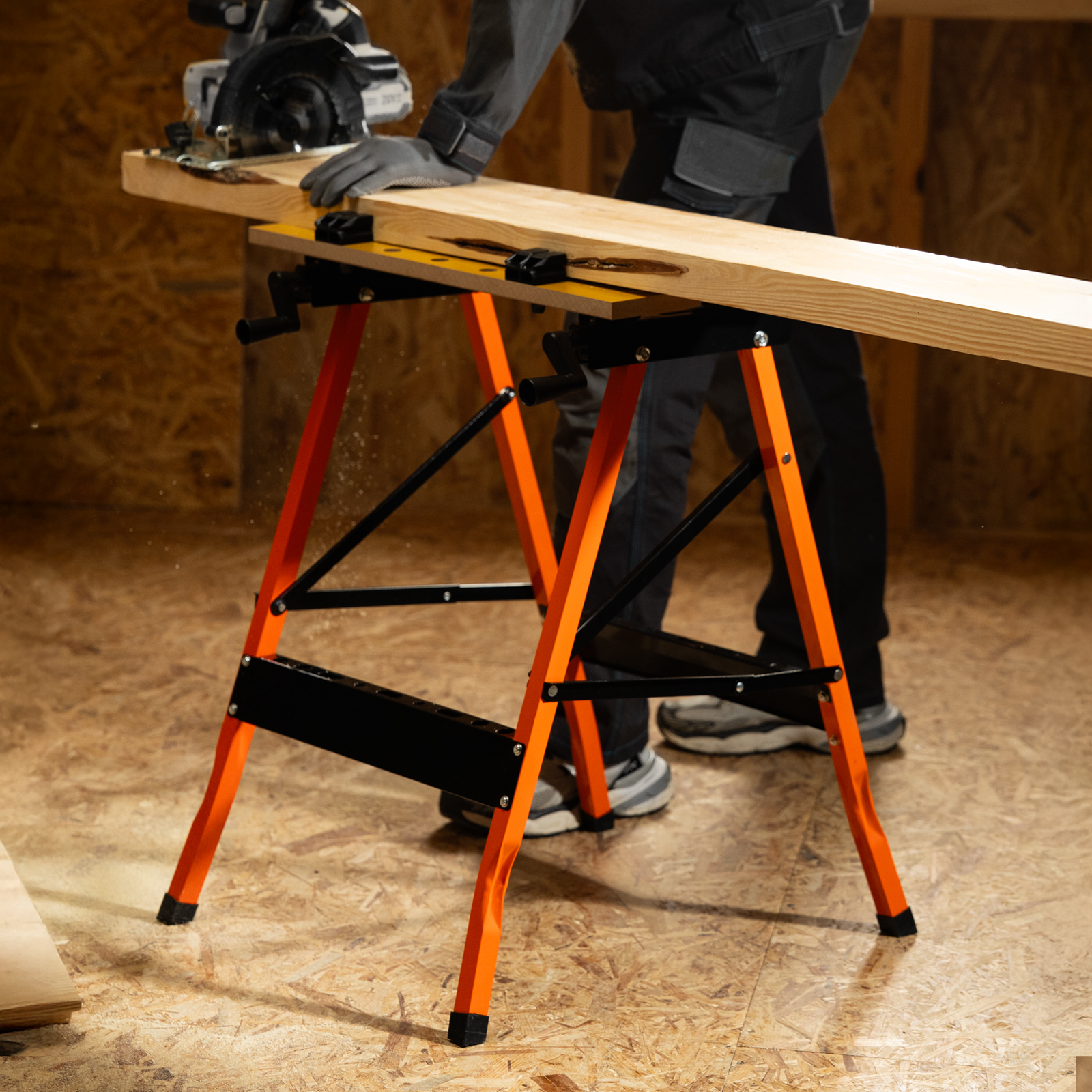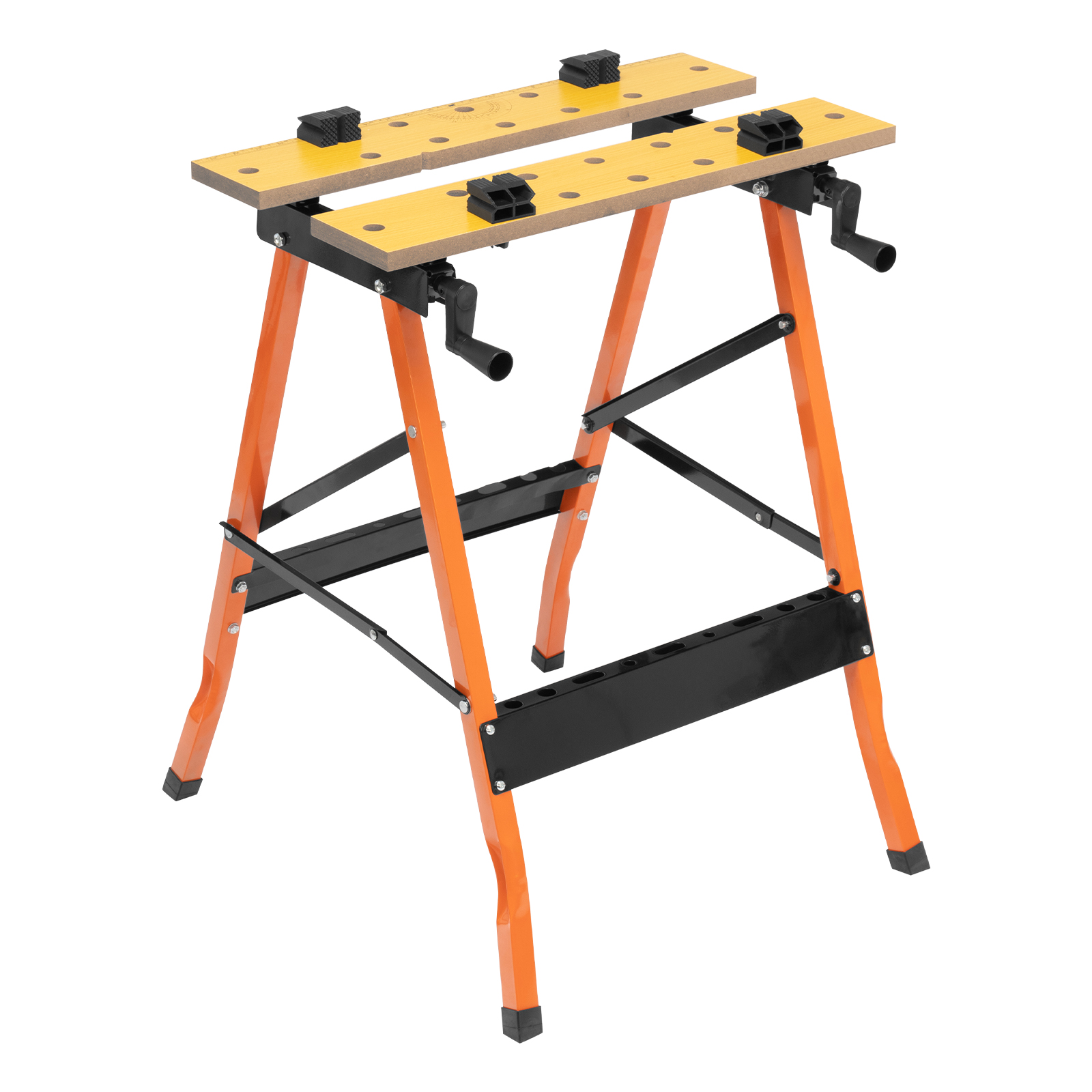 Портативный верстак-тиски Sparta 257065 размером 605 х 635 х 750 мм служит для зажимания заготовок и используется для выполнения столярных и слесарных работ. Столешница верстака представляет собой тиски из двух раздельных блоков, которые позволяют фиксировать даже детали с непараллельными гранями. Верстак пригодится дома и в частной мастерской. Приспособление необходимо устанавливать на ровной поверхности для максимальной устойчивости и исключения травм из-за несоблюдения техники безопасности.