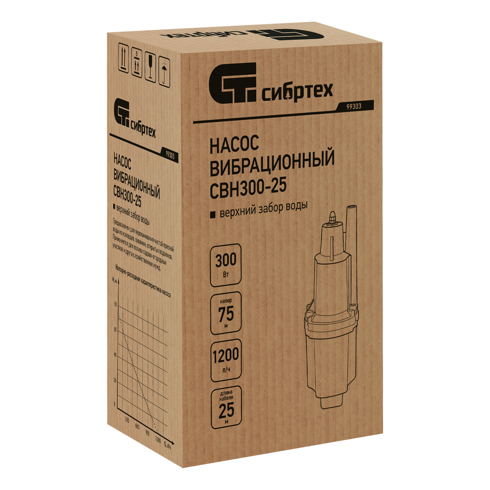 Вибрационный насос Сибртех СВН300-25 99303 с системой верхнего забора воды, мощностью 300 Вт, с кабелем длиной 25 м, обеспечивает напор 75 м и легко справляется с перекачкой больших объемов чистой воды со скоростью 1200 л/ч из резервуаров, колодцев, водоемов и затопленных помещений. Используется для организации системы полива и водоснабжения на даче. Рабочие характеристики насоса позволяют подавать воду на верхние этажи загородного дома без потери давления.