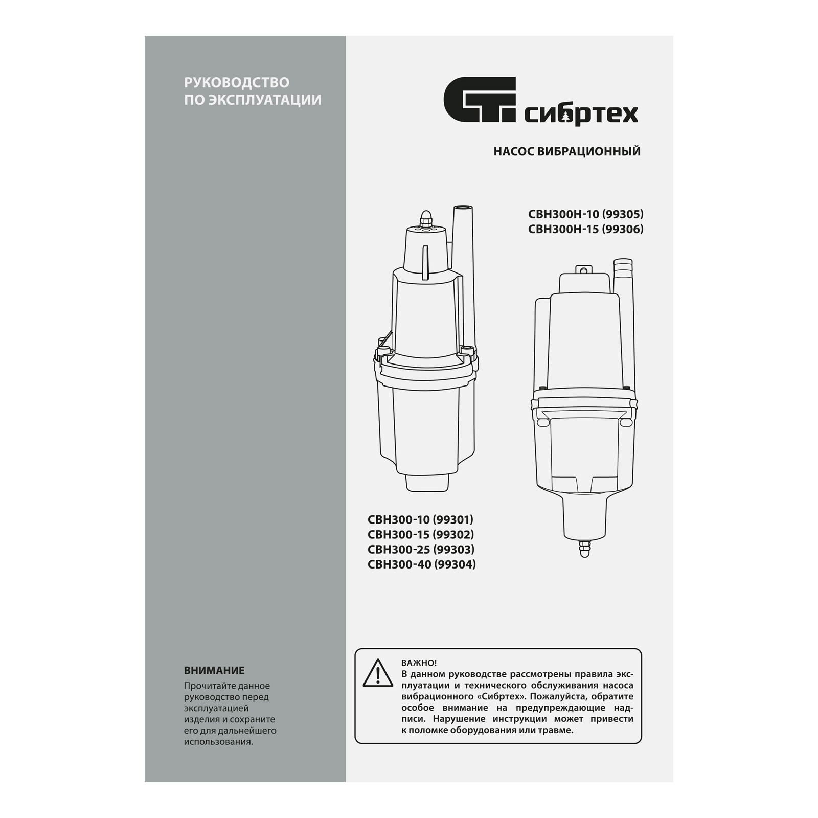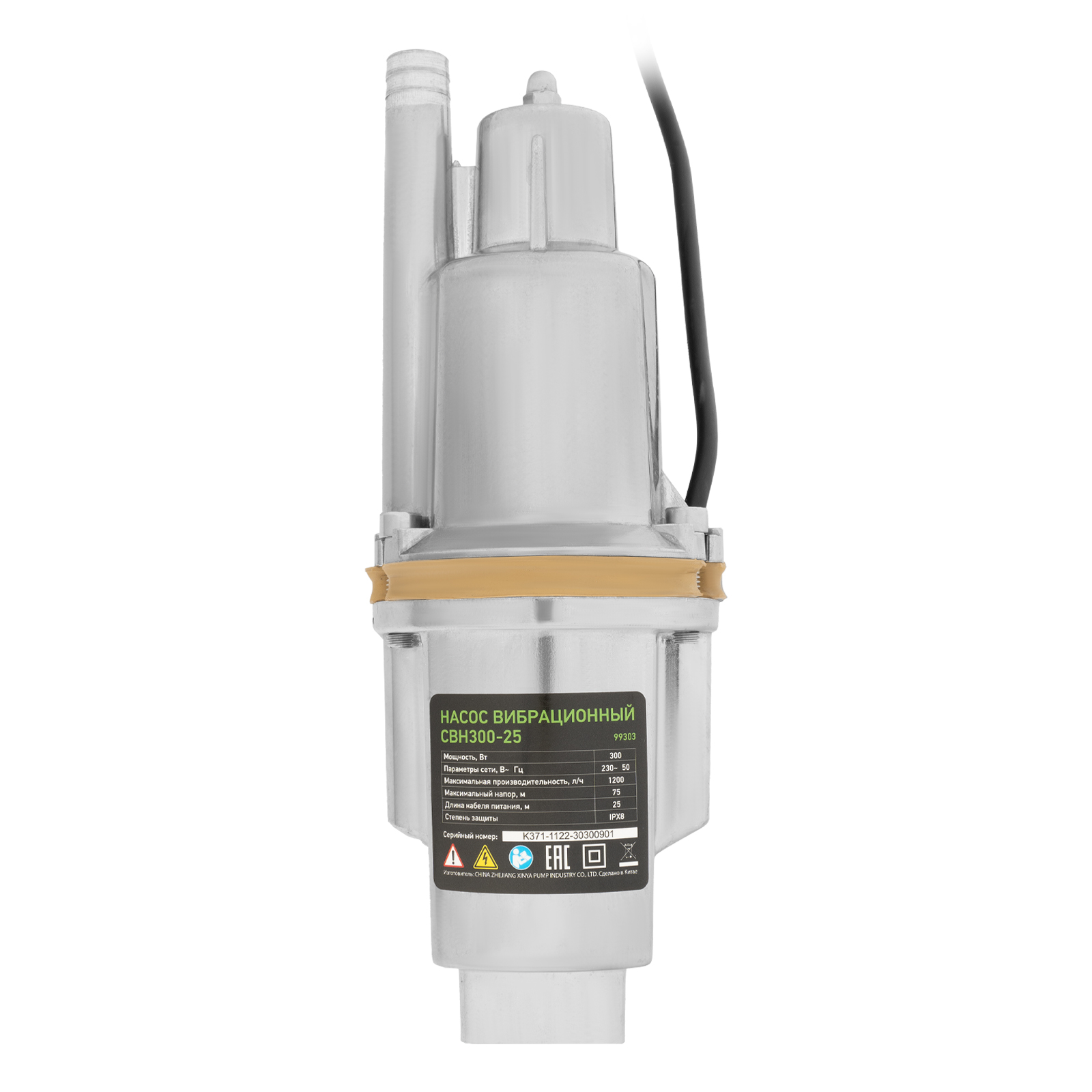 Вибрационный насос СВН300-25, верхний забор, 300 Вт, напор 75 м, 1200 л/ч, кабель 25 м Сибртех в Воронеже