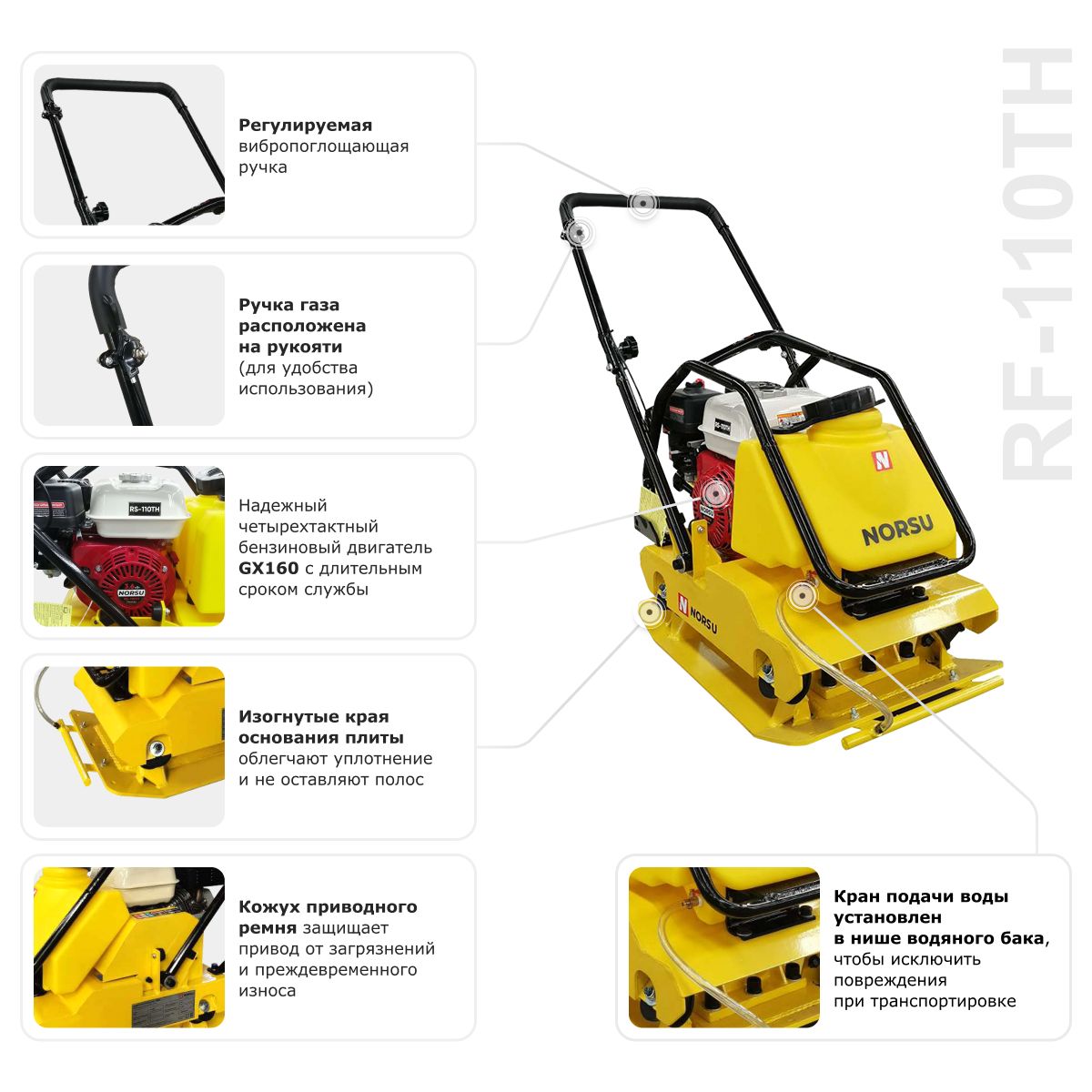 Виброплита бензиновая прямоходная NORSU RF-110TH (колесный комплект, бак для воды) в Воронеже