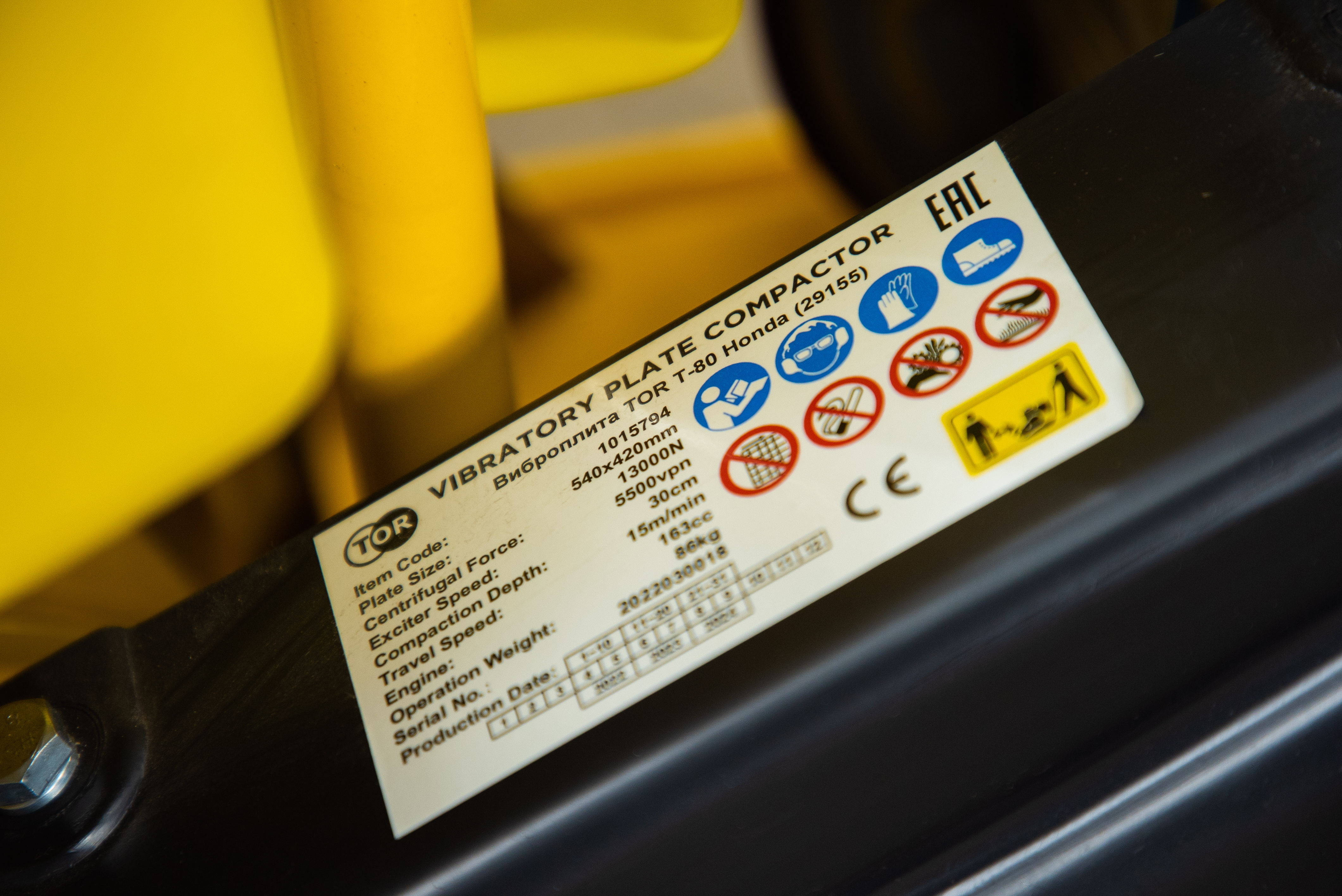 Виброплита 85 кг, 13кН (Honda) бак, коврик, колесный комплект TOR T-80 в Воронеже