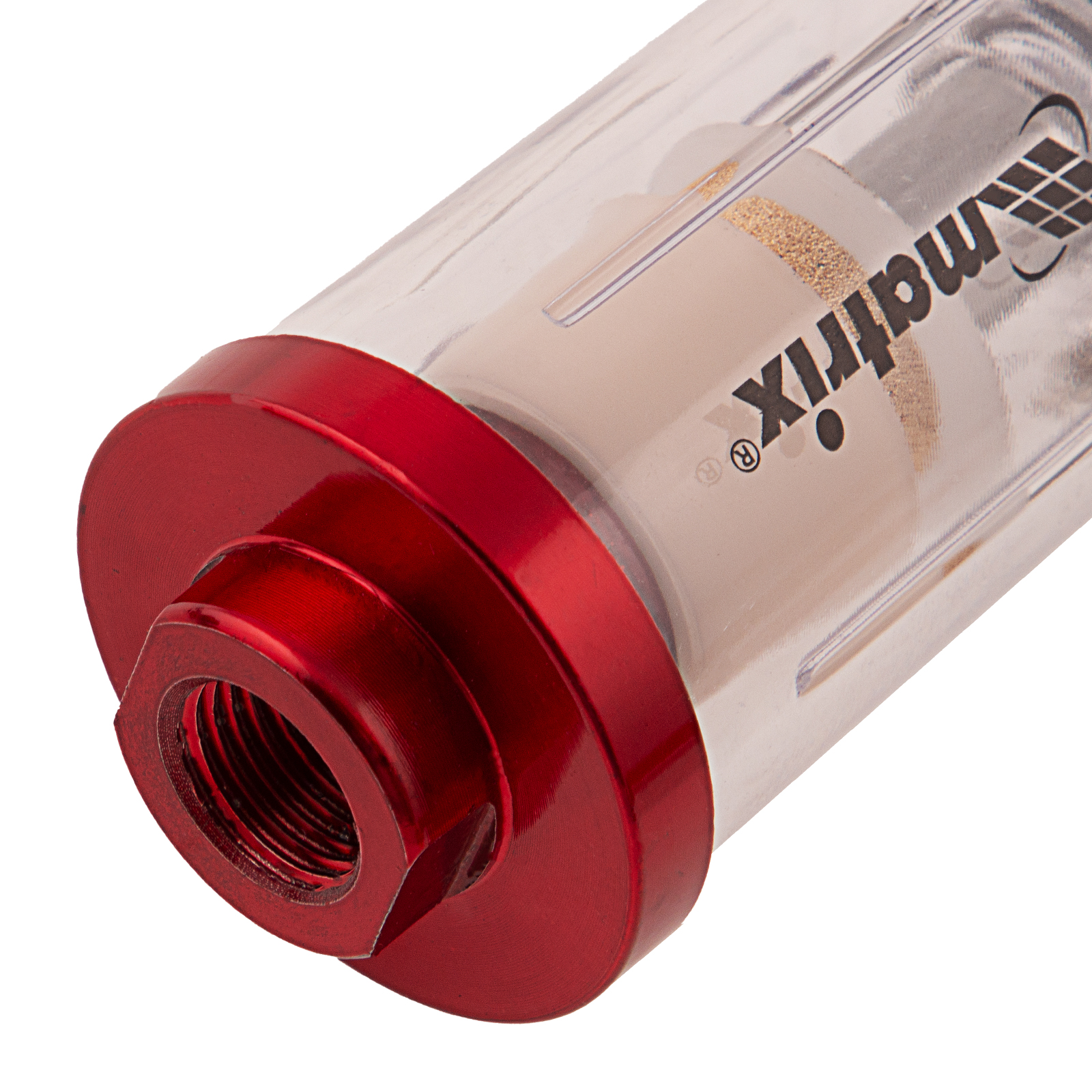 Влагоотделитель Matrix 57008 с присоединительной резьбой 1/4 дюйма используется в компрессорах для очищения воздуха под максимальным давлением до 8 бар от частиц масла, конденсата и фракций размером до 10 мкм. Он препятствует засорению пневмоканалов, предотвращает появление ржавчины и обеспечивает чистоту сжатого воздуха на выходе.