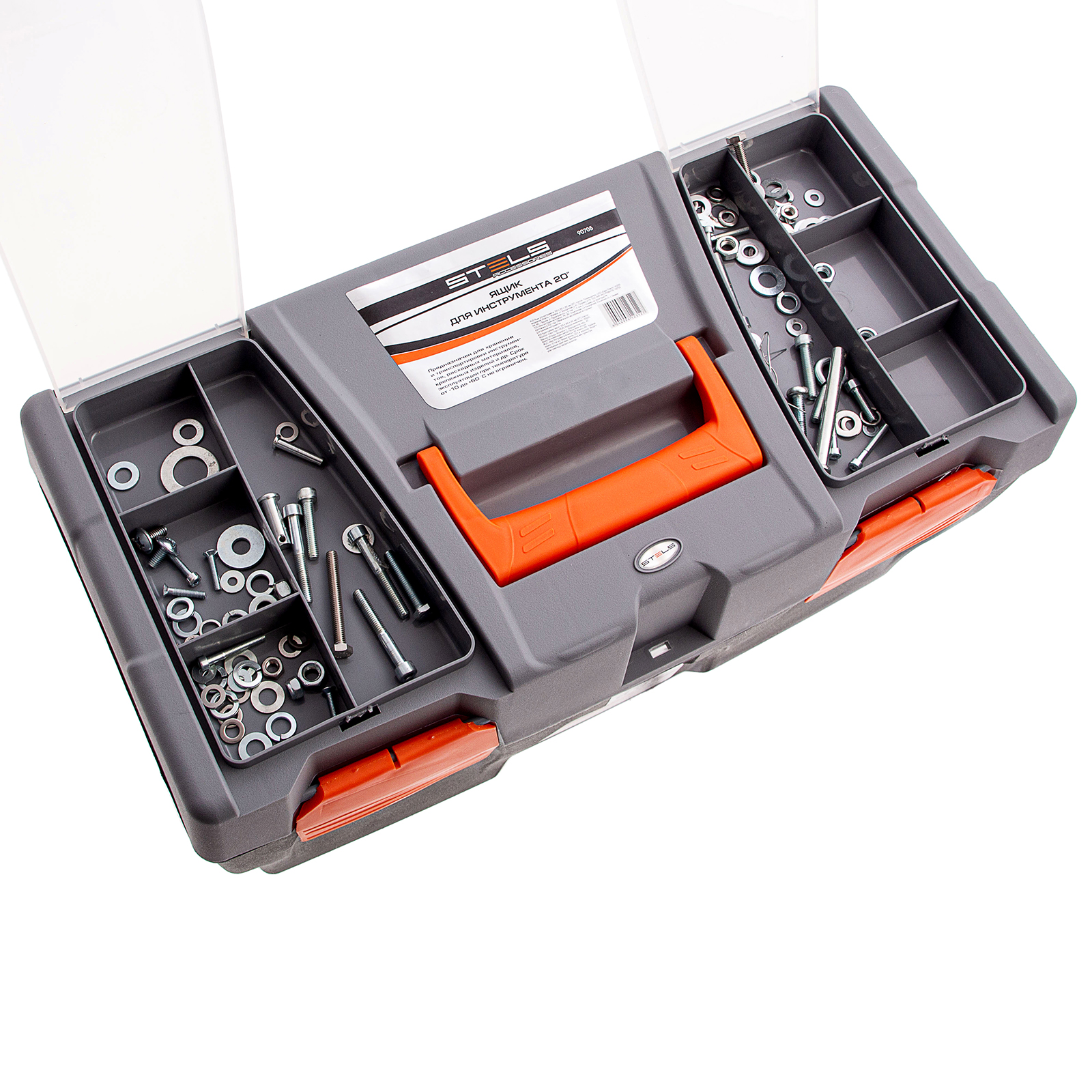 Ящик для инструмента Stels 90705, 20 дюймов, габаритами 500 х 260 х 260 мм, из пластика, предназначен для переноски и хранения инструментов, хозяйственных мелочей, рыболовных снастей. Содержимое не рассыпется, поскольку он надежно закрывается. Встроенные в крышку отделения обеспечивают быстрый доступ к крепежам и другим необходимым предметам. Большой ящик для хранения инструментов будет полезен дома, на даче, в гараже и на рыбалке.