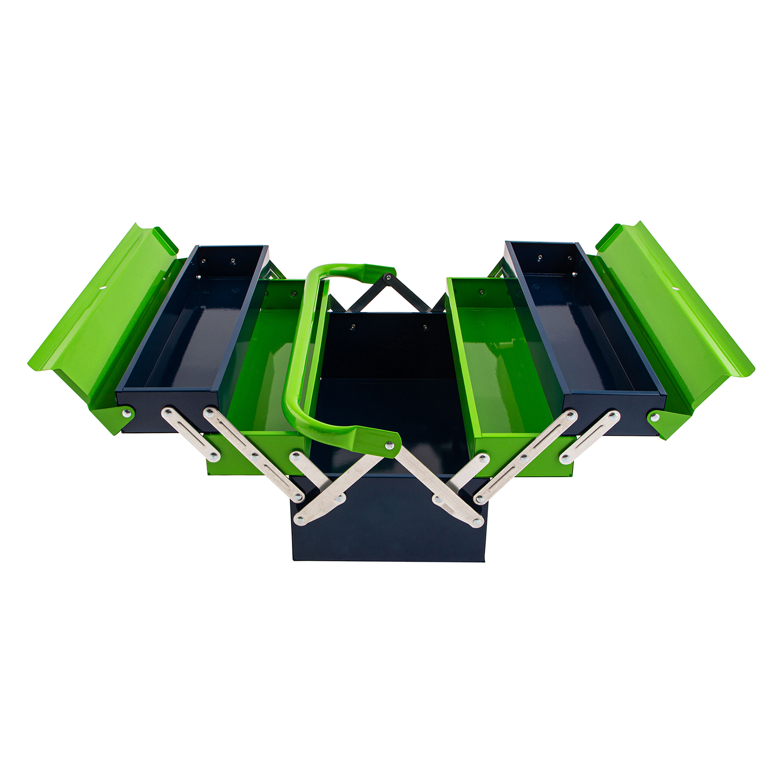 - Удобное использование — ящик легко раскладывается, ручка поворачивается и не мешает размещать или извлекать инструменты.