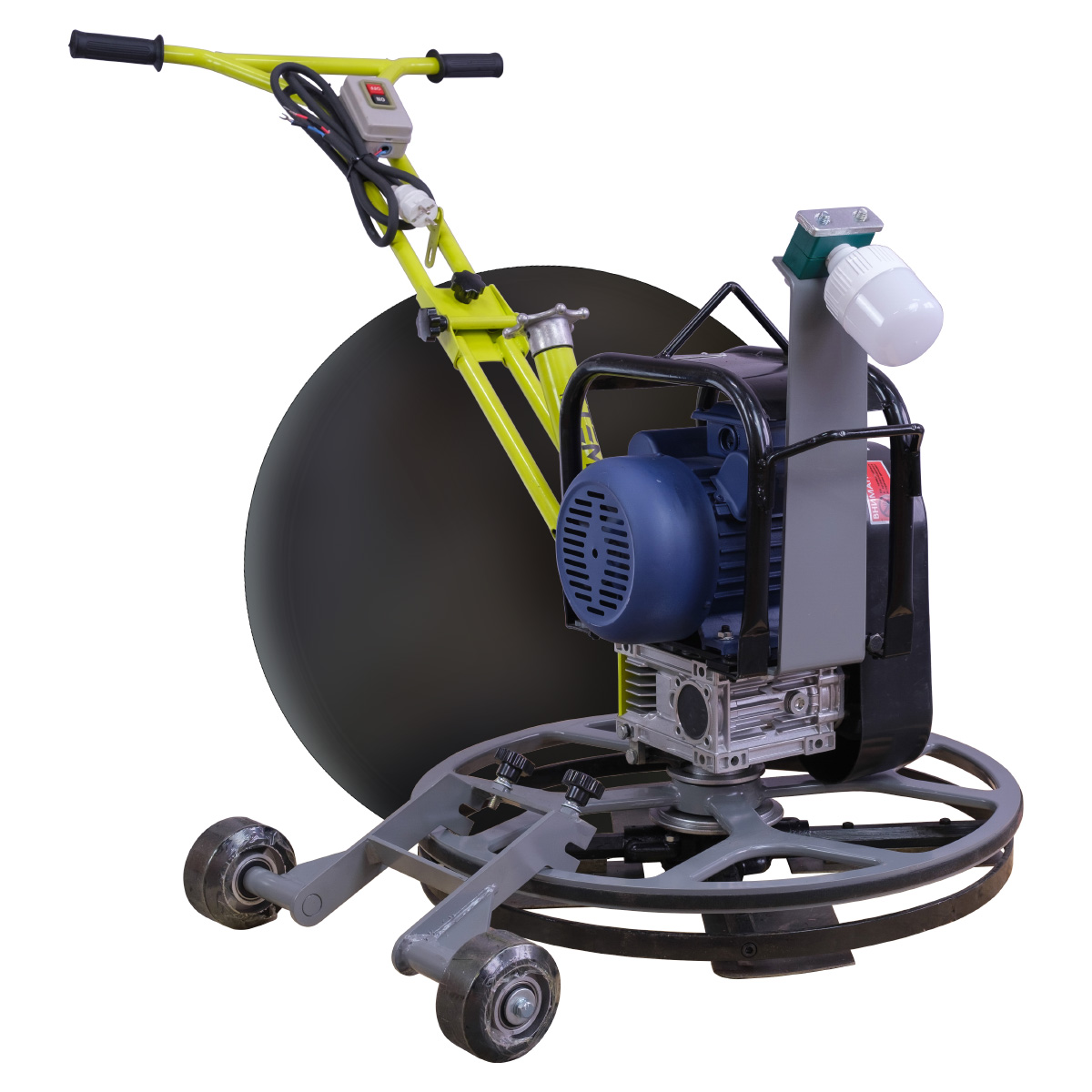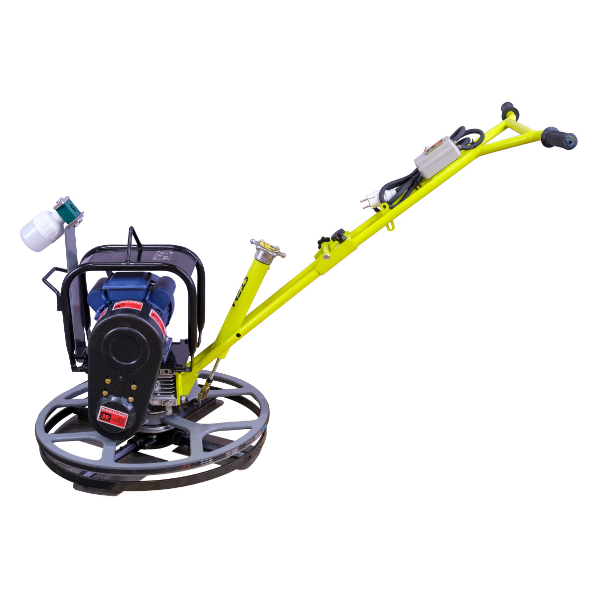 Преимущества Сделана на базе электрического двигателя, отлично подходит для работы в закрытых помещениях. Кромочник. Комплектация Транспортировочные колеса Резиновая накладка рукоятки Лезвия в комплекте: 4 шт. Затирочный диск в комплекте Ключи в комплекте Светодиодная лампа |