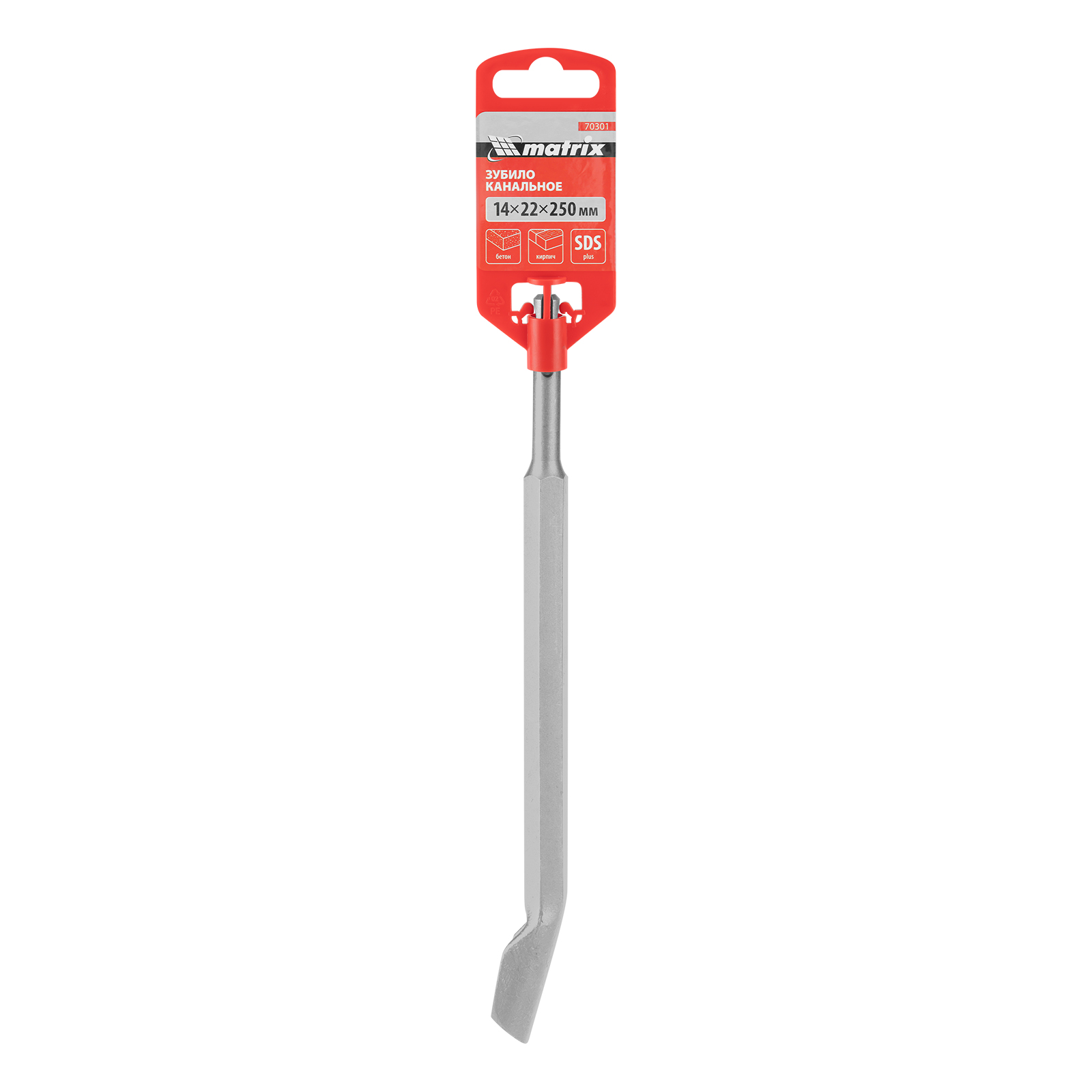 Канальное зубило Matrix 70301 размером 14 х 22 х 250 мм — оснастка для перфораторов с патроном под хвостовик SDS PLUS. Специальная форма инструмента позволяет штробить канавки под проводку, а также демонтировать плитку, штукатурку и решать другие задачи.