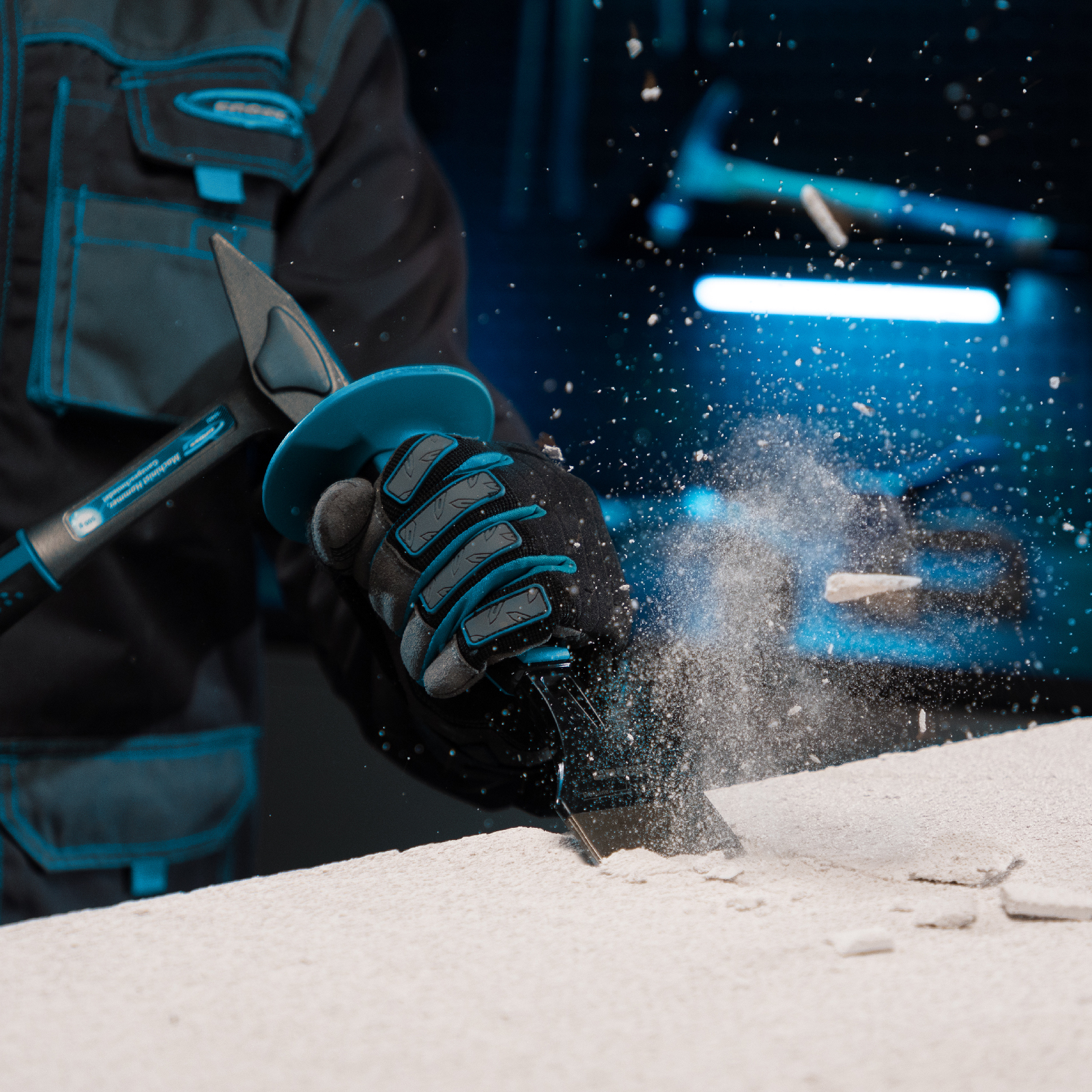 - Безопасность — протектор предотвращает случайное попадание молотком или киянкой по руке.