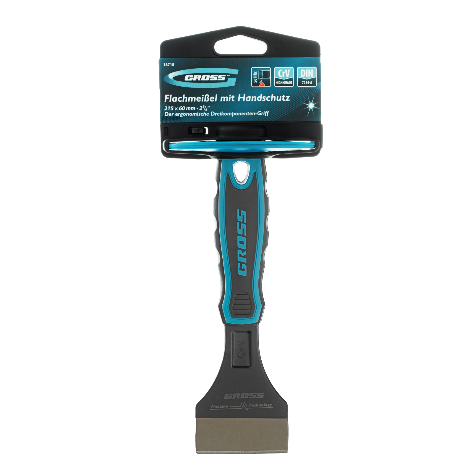 Зубило-конопатка Gross 18715 размером 215 х 60 мм-2-3/8 дюйма — ручной режущий инструмент, работающий под ударным воздействием молотка или киянки. Рассчитано на работу с деревянным срубом, плиткой, камнем, кирпичом. Используется для запечатывания швов, монтажа утеплителя в деревянных постройках, демонтажа облицовки и решения других задач.